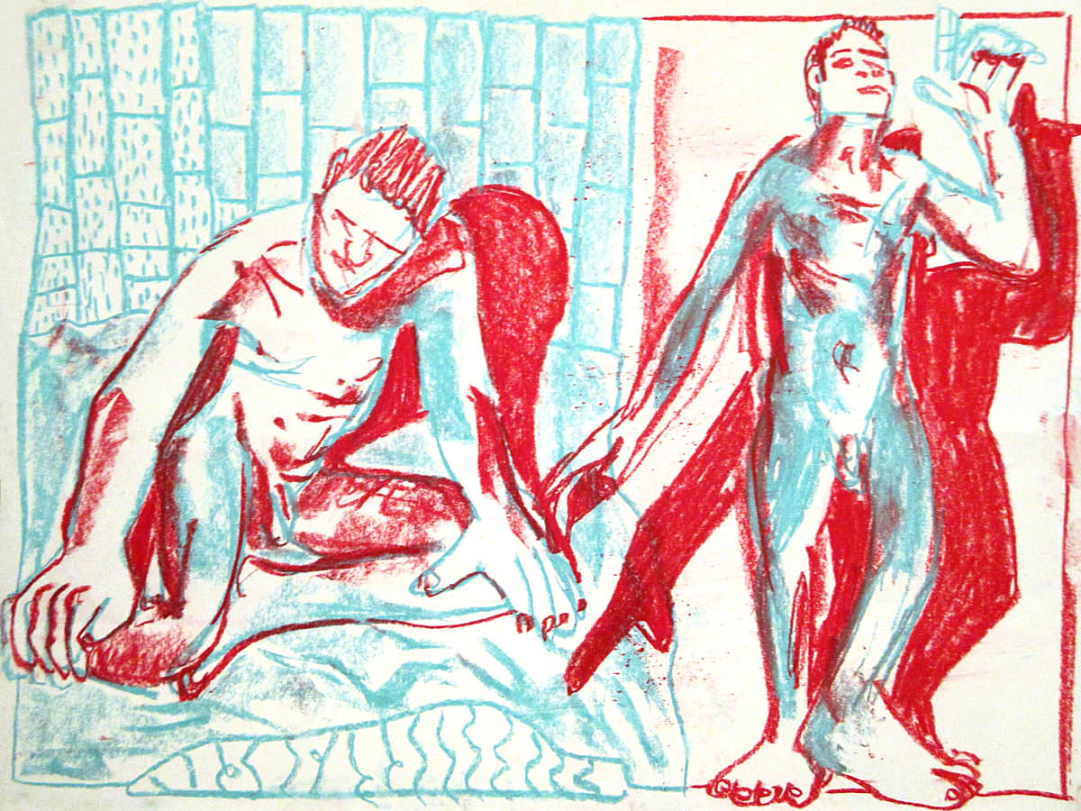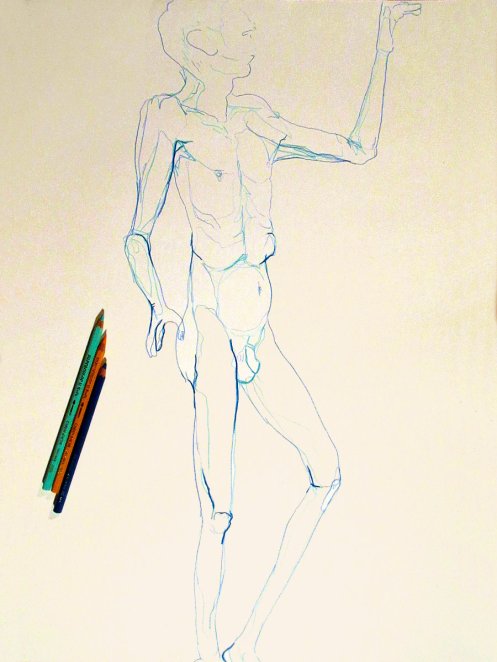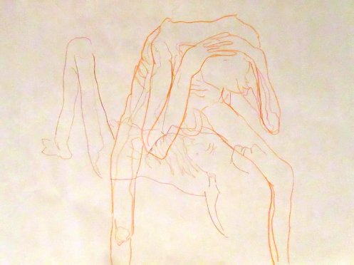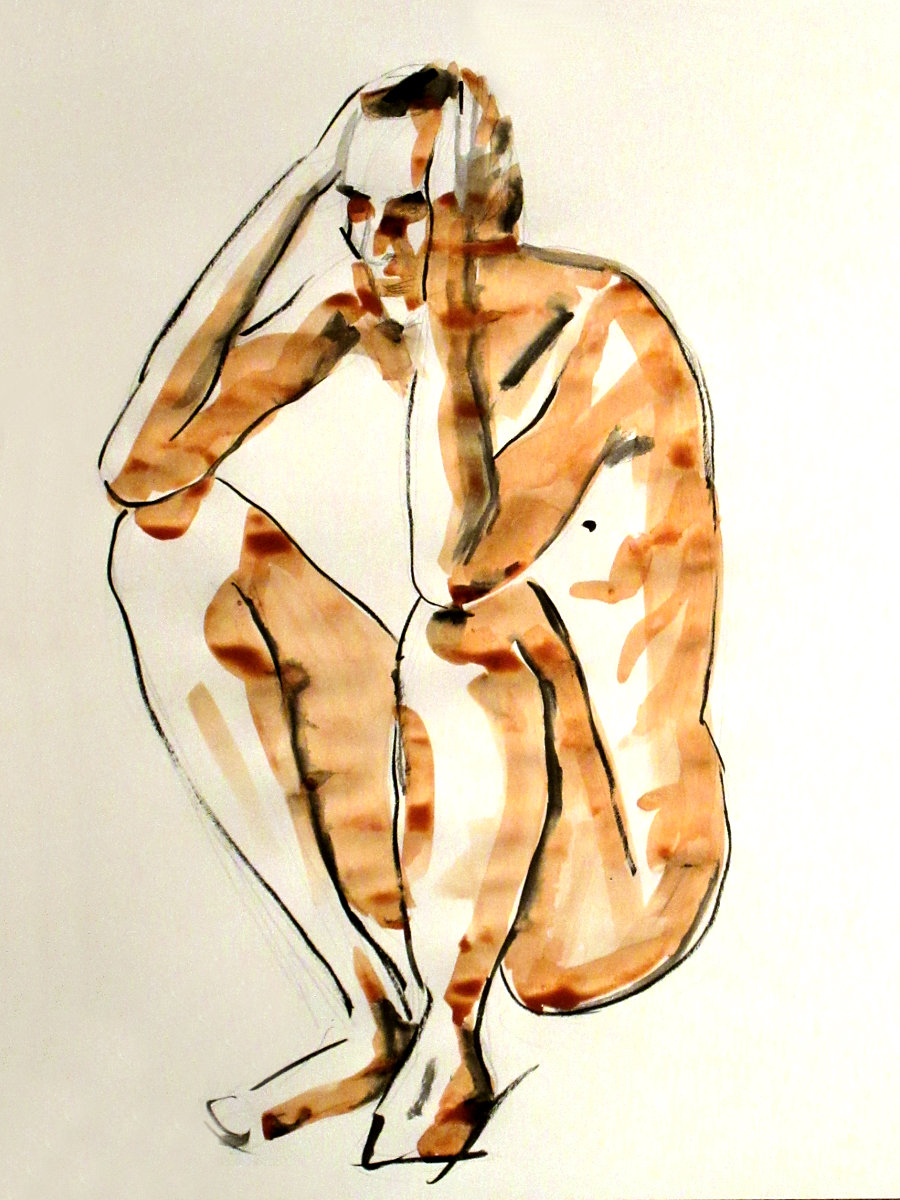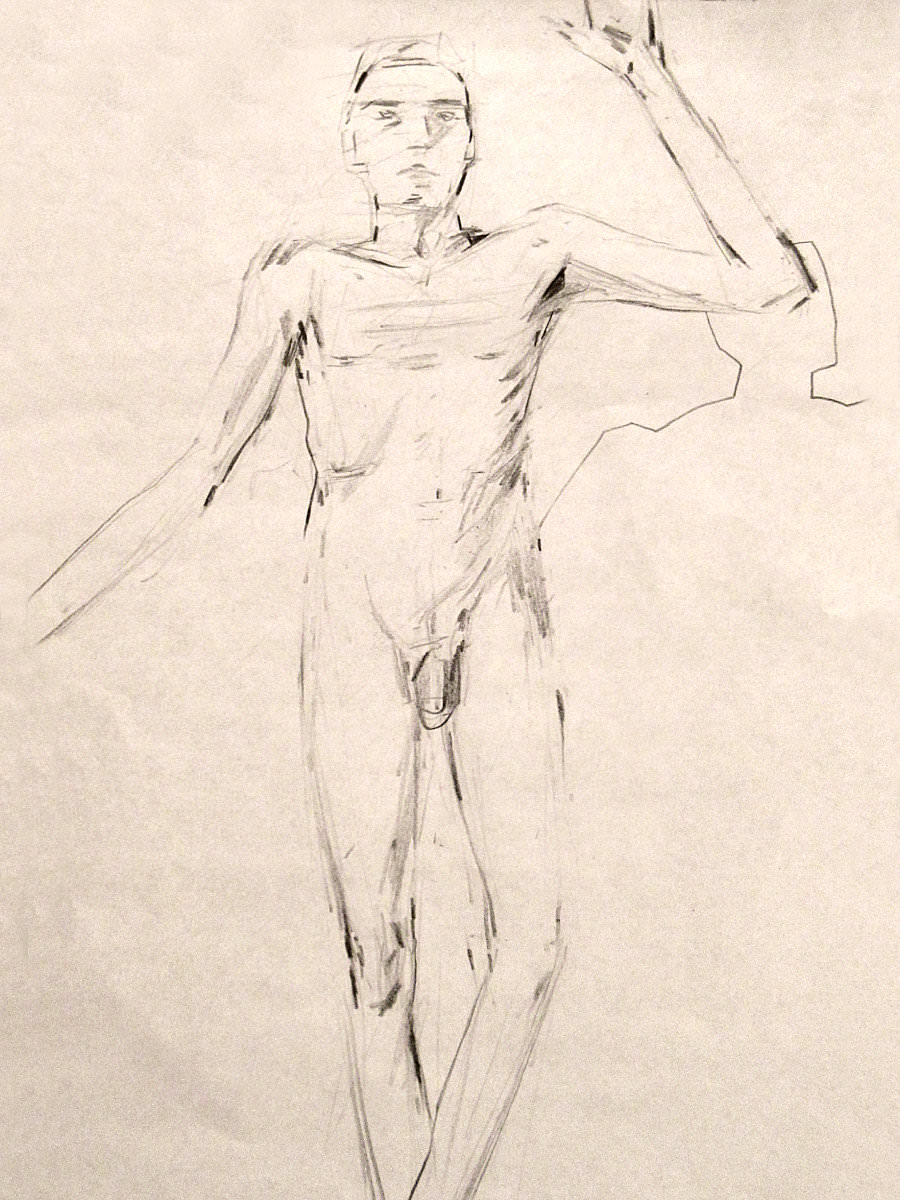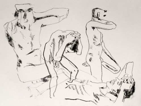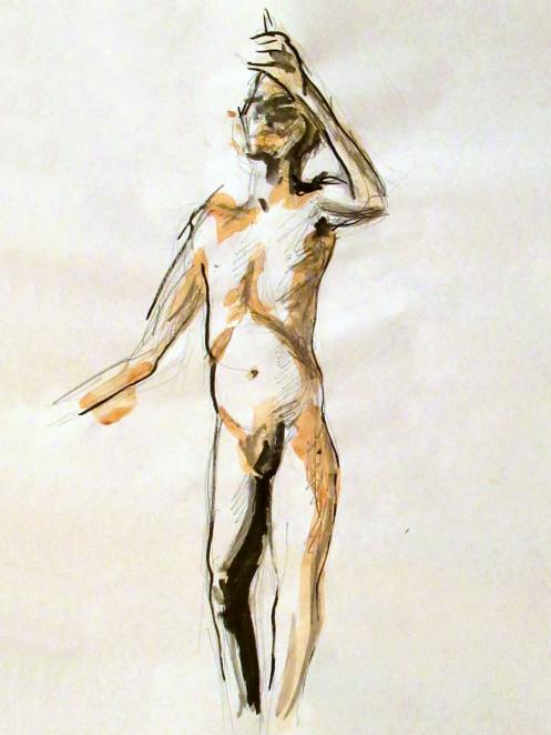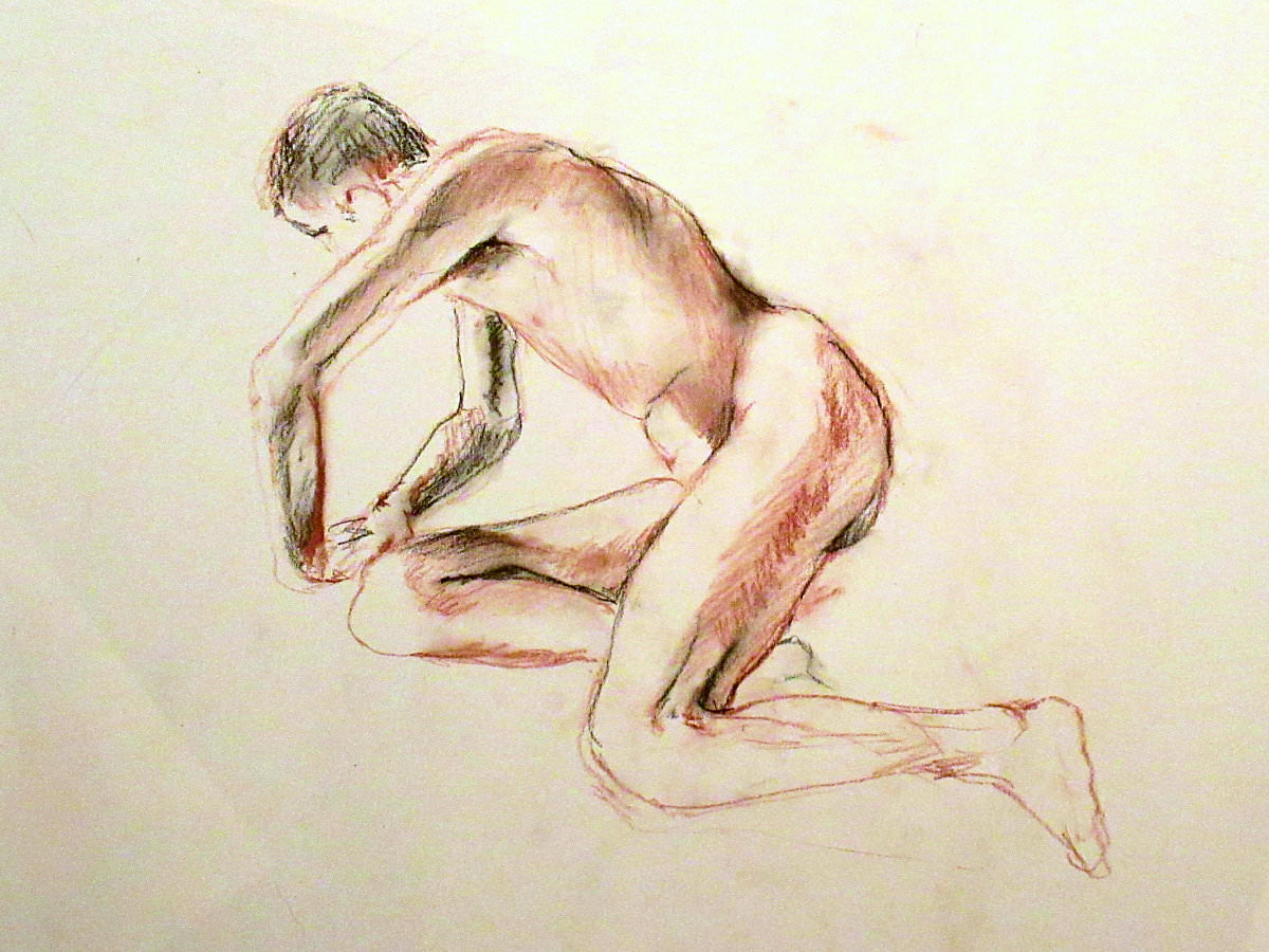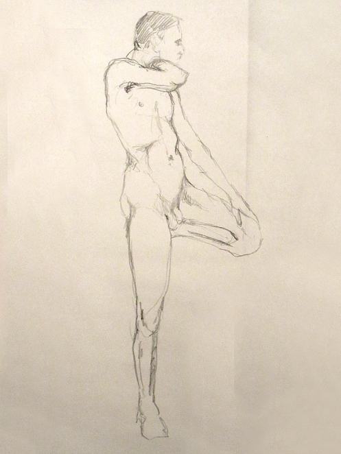 After an extended drinks break, in which I was generously furnished with red wine, we finished with poses of 15-minutes and 20-minutes. By now the bingo caller downstairs had gone into overdrive – bellowing out his one-fat-lady and all-by-itself – but, between smirks and winces, we endured. The result was an impressively high standard of work from everyone present, displaying strong style and verve. It was good to be back, and even better that the group has returned.