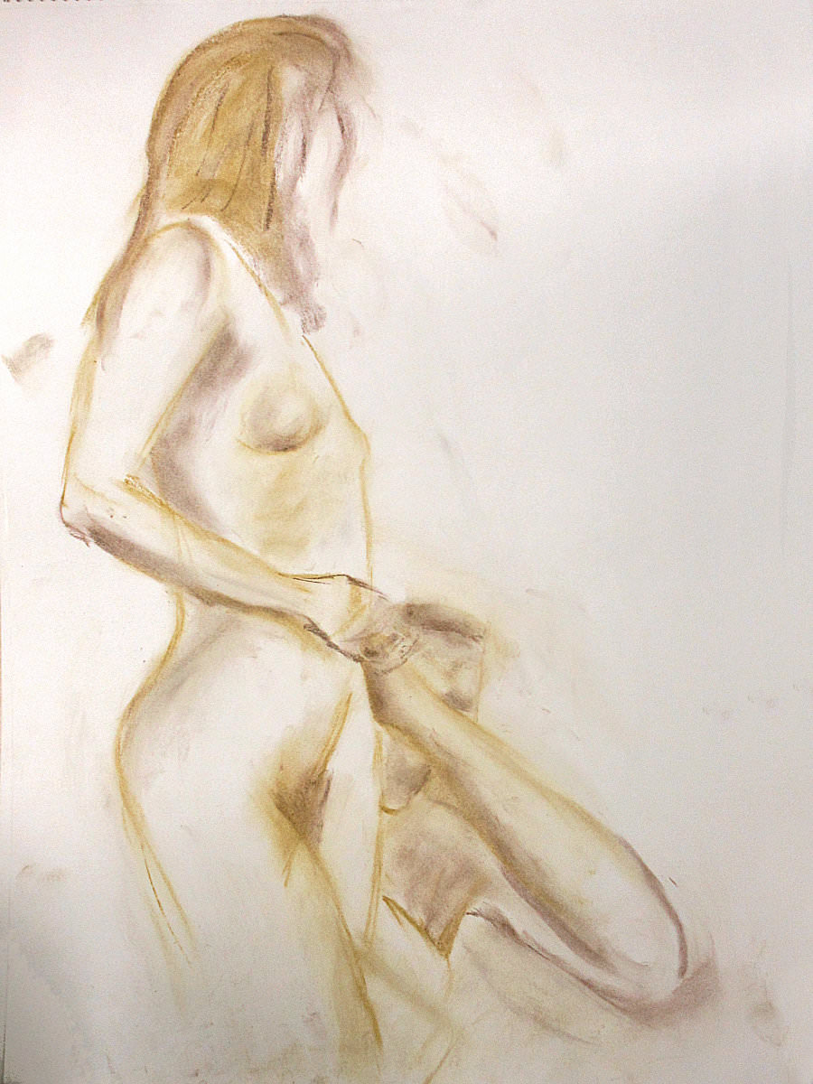 Suppose life drawing was not an intense process of scrutiny, measurement, empathy and application. It might just be a relaxing pastime to share with friends whilst having a natter. Many groups – both formal and informal – conduct their practice without any sound, or are perhaps silent save for musical accompaniment. A minority, meanwhile, have developed into easy-going arty social clubs. Whilst duo-posing at Fairkytes Art Centre for LeNu Life Drawing on Tuesday, Esther and I had a taste of the latter, as a third of the group were merrily bantering throughout.