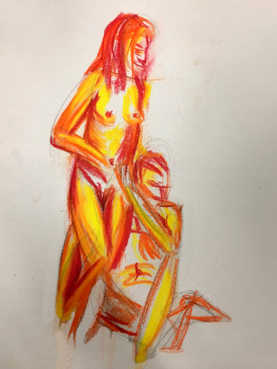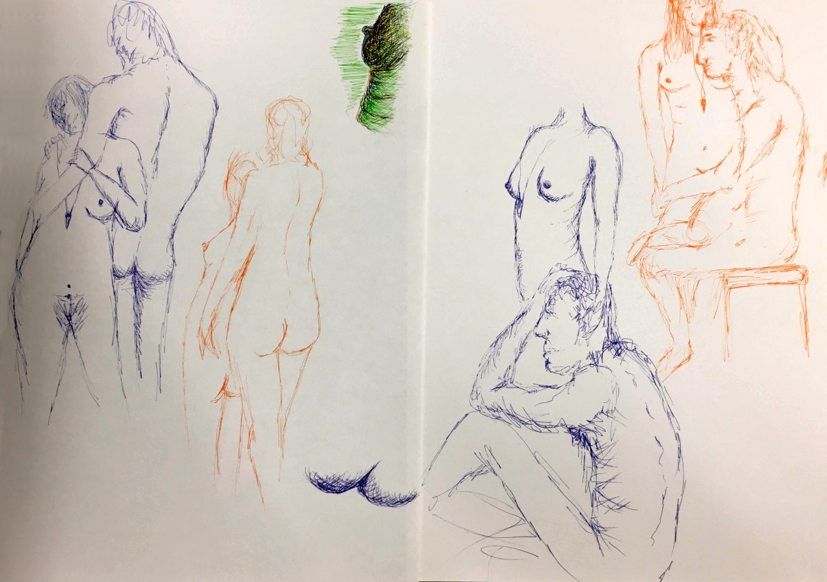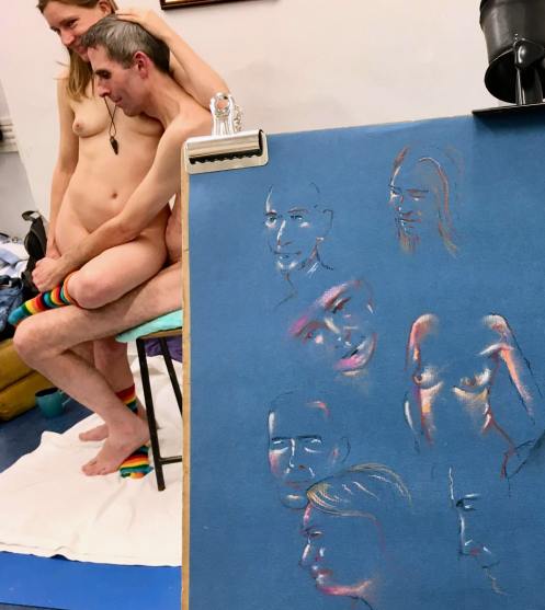 Is constant chatter in the room disrespectful? I don’t feel there’s a definitive answer as it’s for each person to assess the likely impact of their conduct on those around them. Personally I’m quite content with conversation as it can be a welcome distraction from any physical discomfort. More likely, it could disturb the concentration of other artists, yet equally they might appreciate a friendly environment, even if not actively joining in. Topics for discussion during this session ranged from hiring tango dancers at funerals, to #MeToo family revelations…