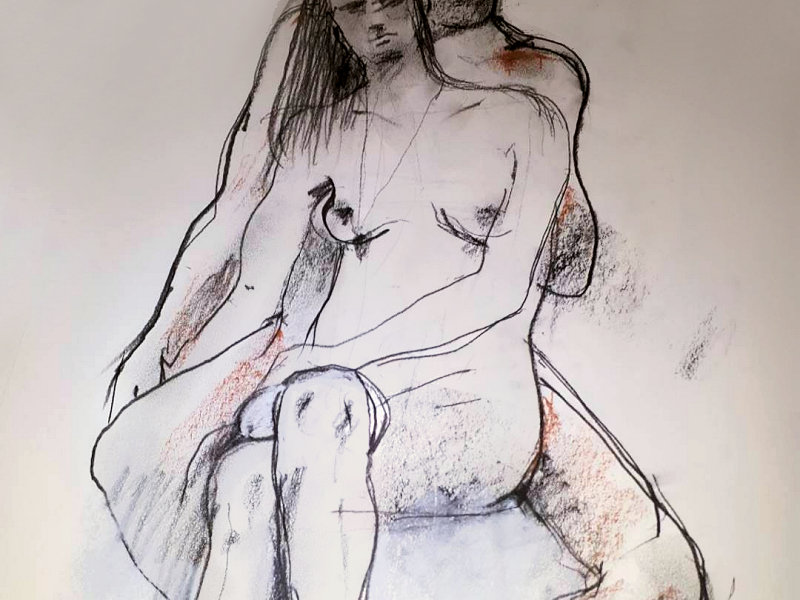 It was a merry little session as befitted our last life modelling, and the group’s last life drawing, of 2017. Group organiser, Karen had put lashing of gorgeous mulled wine on simmer, with a couple of full Irish cream liqueur bottles on the side and the ubiquitous plate of mince pies. Only occasional despairing sighs from artists struggling with their works was out of keeping with ambient festiveness, but for models it is a positive sign of their desire to do us justice.