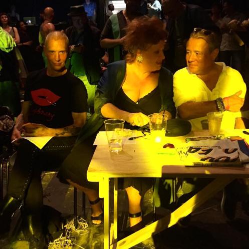 The go-go judges did not smile upon us, but we were awarded arty matchboxes and a consolation tea towel for our efforts. As the time neared half-past ten with crowds and chaos both dwindling we melted backstage for one last raid on the complimentary gin before washing under a cold weak shower. It had been the hottest day of the year and we’d travelled the length of the country to submerge in anarchic nude performance art. We were shattered – but what a privilege to share: a night with the Neo Naturists.