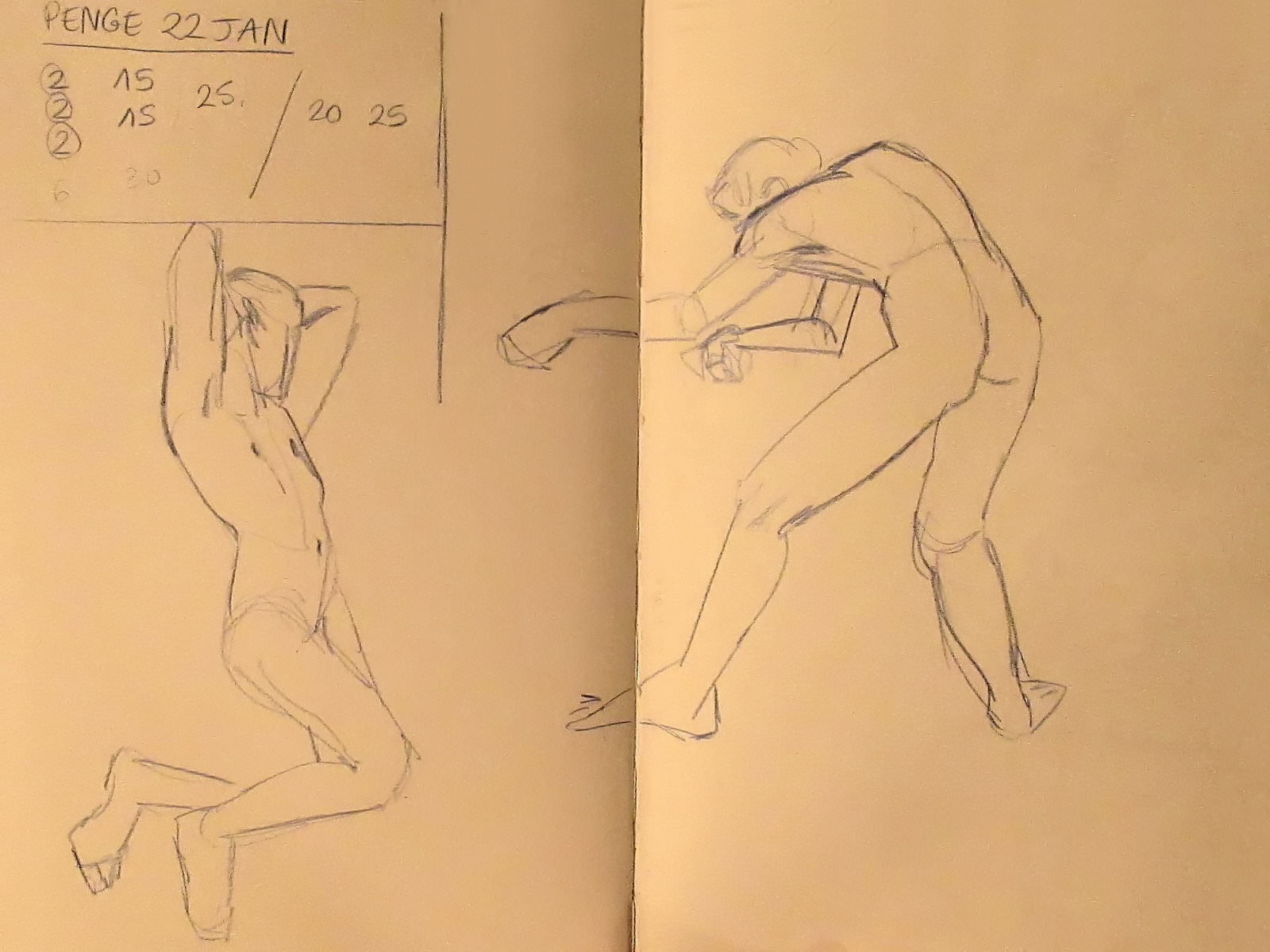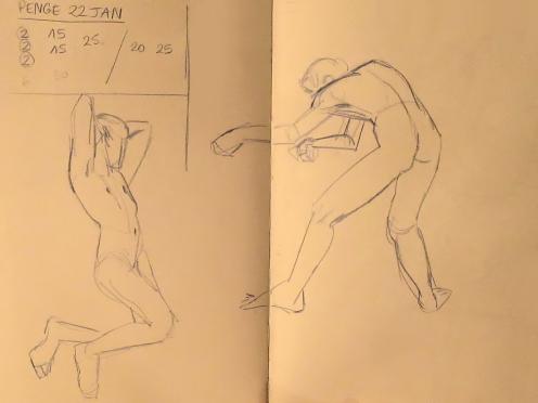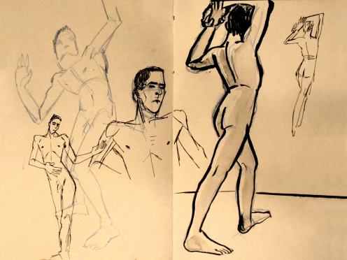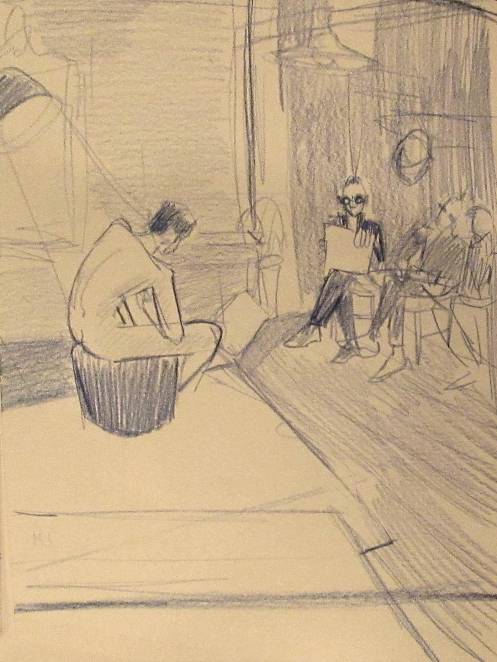 When the session had concluded, everybody observed the custom of putting favourite sketches on the floor for broad appreciation. In all honesty I can say that this was the strongest set of works I’d seen in two years of modelling here. I had sensed everyone was getting absorbed by the challenges, and appreciated their respectful applause at the end. Tatiana can be very happy in the knowledge her group is flourishing nicely.