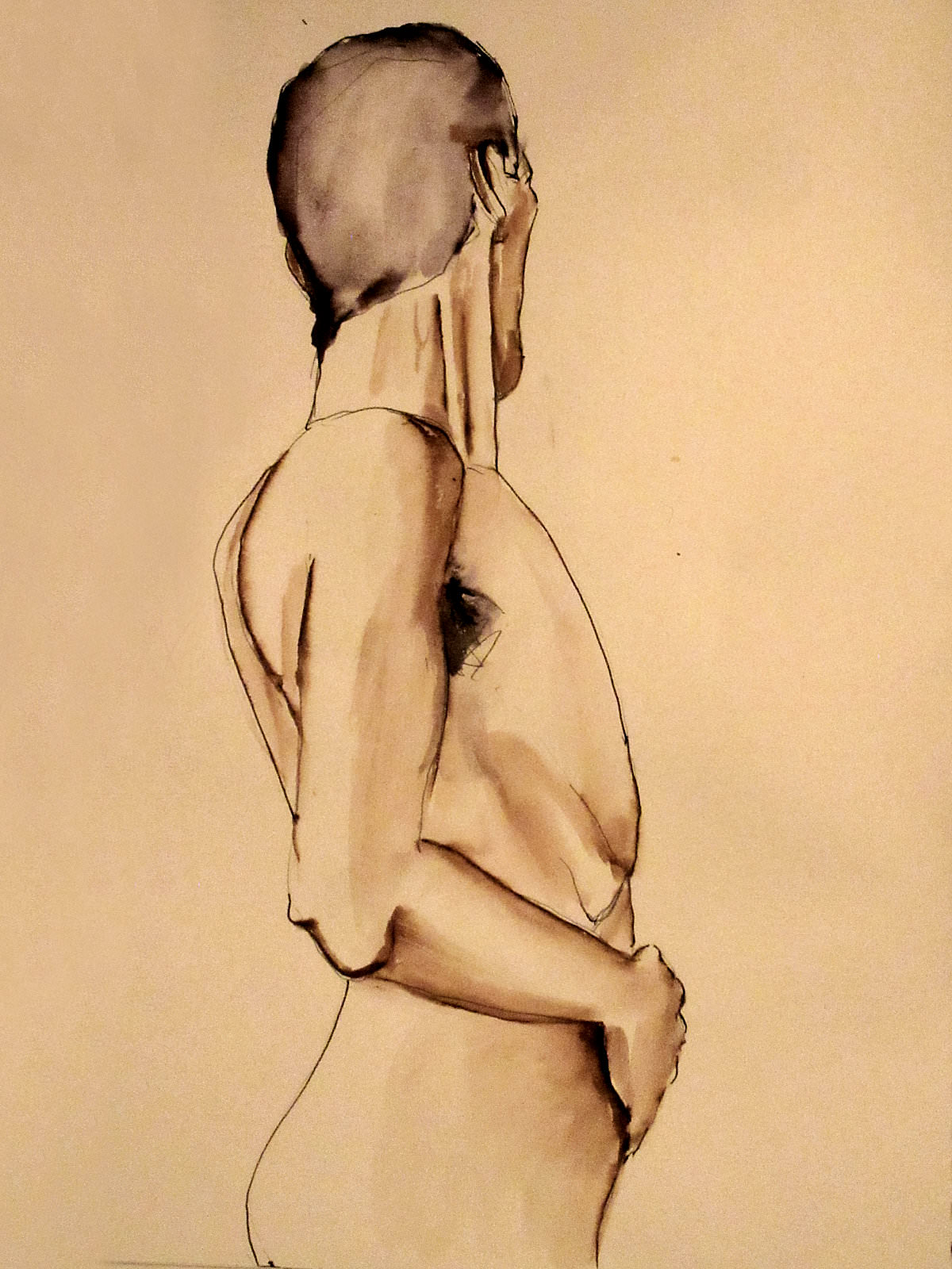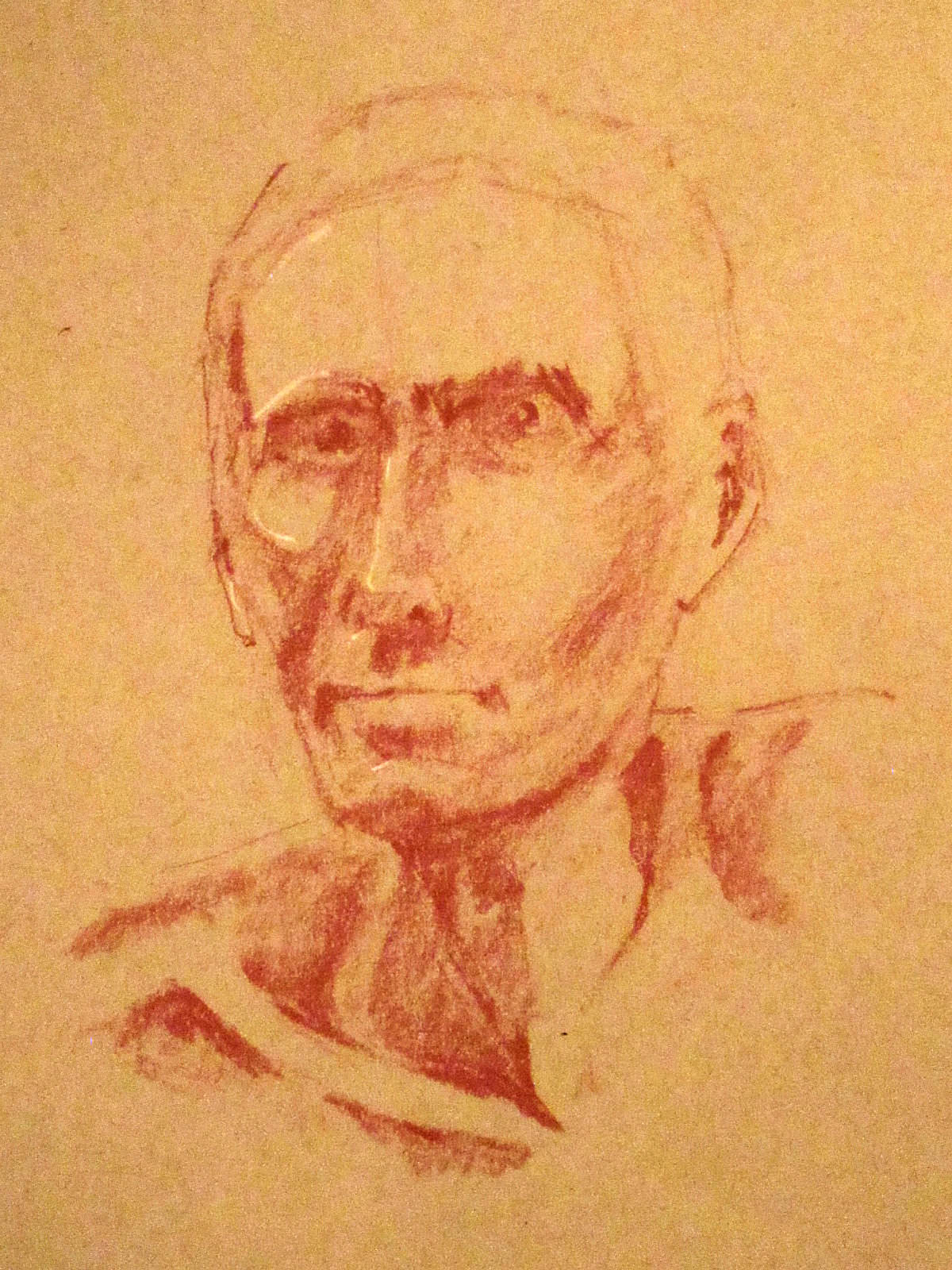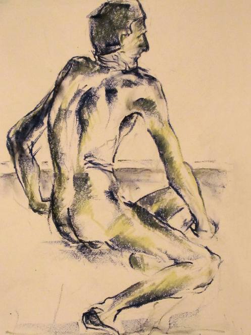 My previous sessions here have either been ‘short poses’, which means nothing more than 15-minutes, or ‘long poses’, meaning the reverse. This evening was technically a long pose session but we started with three of 2-minutes, just to get warmed up. Next came two of 15-minutes (both standing), followed by one of 23-minutes (seated on the floor), which took us to an interval.