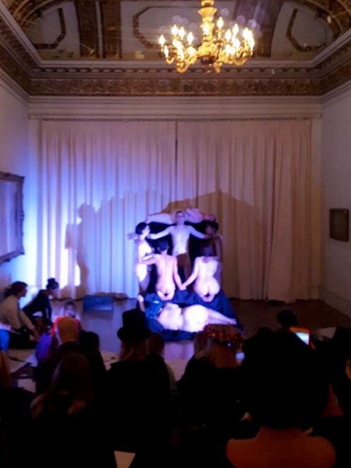 RA Lates: Rrose Sélavy’s Dada Extravaganza on Saturday 9 December 2017 gave visitors to the Royal Academy of Arts a chance to: ‘Enter the worlds of Salvador Dalí and Marcel Duchamp for one unforgettable night in 1930s Paris.‘ And, as part of this night, Art Macabre be would recreating In Voluptas Mors with seven life models.