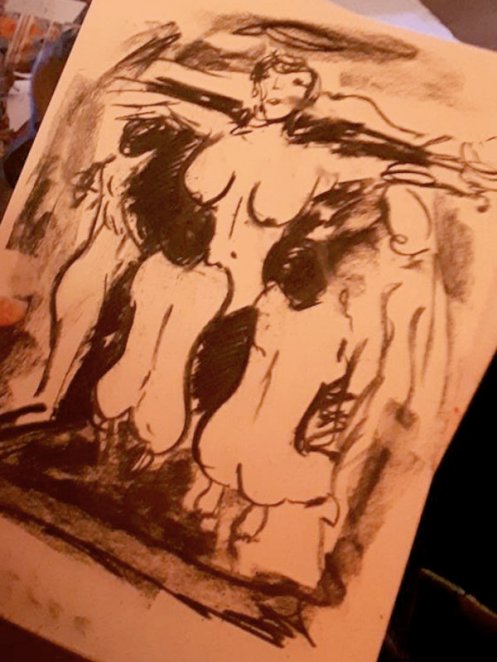 Having found 10-minutes was OK, our subsequent skulls were all 15-minute poses. It was now the turn of me and Angel to be cheekbones, with Porscha in the middle.
