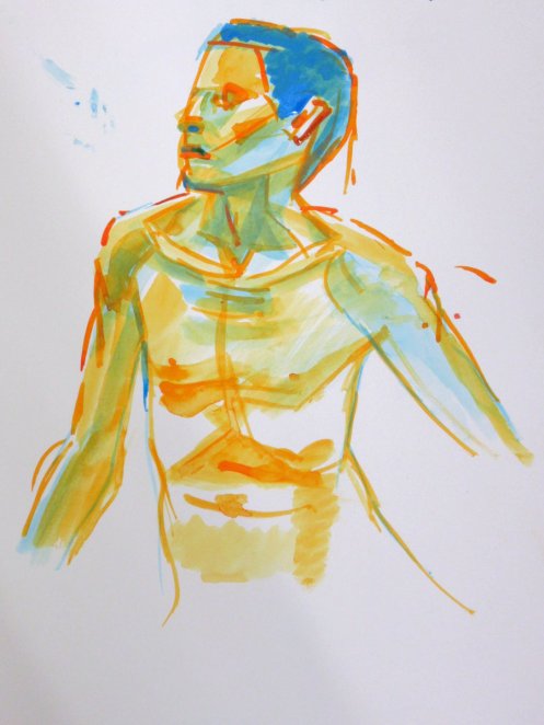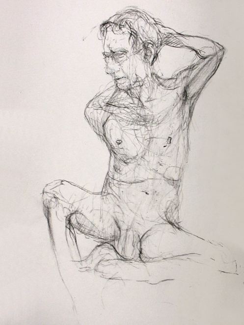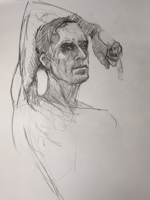 Pose times would be different: 20-minutes, 20-minutes and 25-minutes took us to the interval, with Tim suggesting a clockwise rotation of 120º each time starting off facing the back wall. After tea and biscuits we ended with poses of 20 and 25-minutes. I still had creative discretion to decide each pose, so I used the fresh energy in the room to ignite new tensions within old favourites. Tim, meanwhile, reinvigorated his tuition.