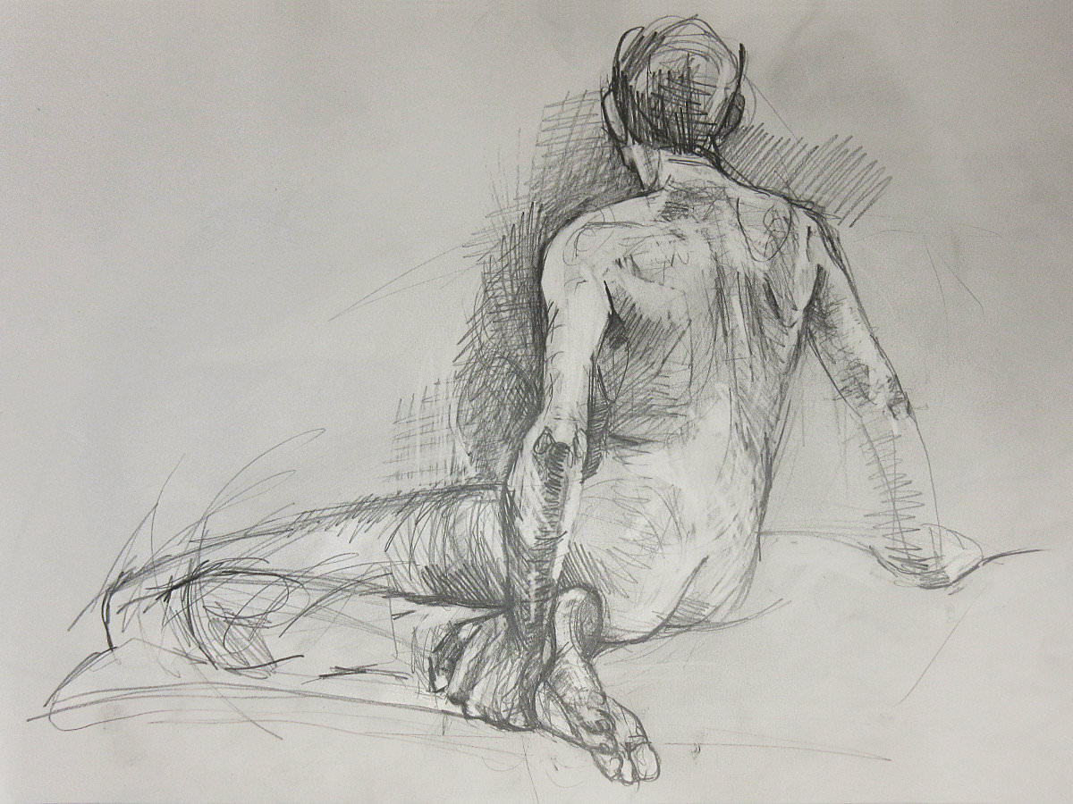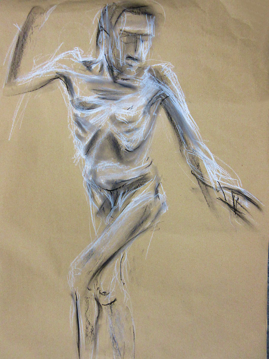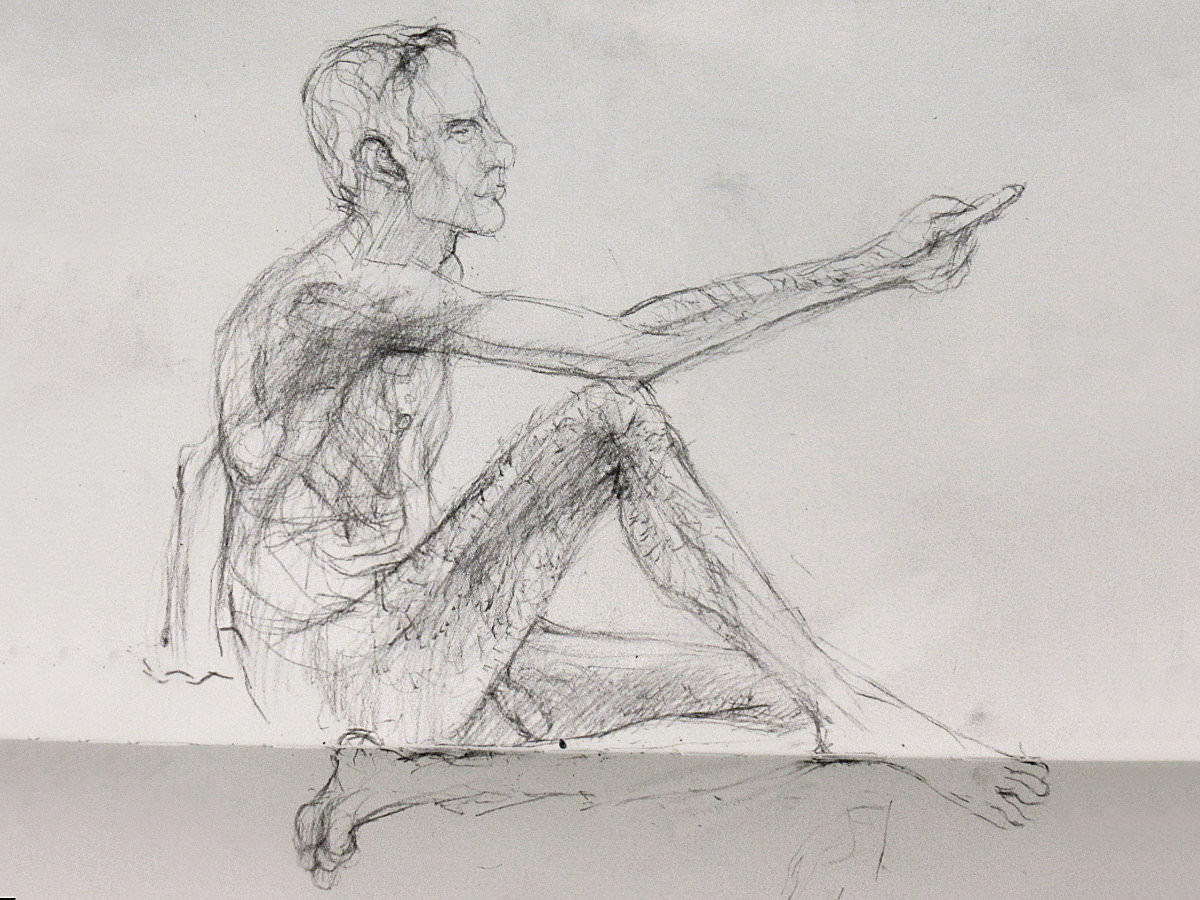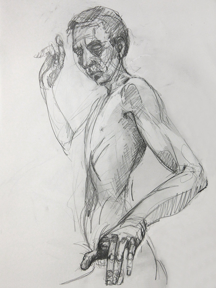 Pose times would be different: 20-minutes, 20-minutes and 25-minutes took us to the interval, with Tim suggesting a clockwise rotation of 120º each time starting off facing the back wall. After tea and biscuits we ended with poses of 20 and 25-minutes. I still had creative discretion to decide each pose, so I used the fresh energy in the room to ignite new tensions within old favourites. Tim, meanwhile, reinvigorated his tuition.