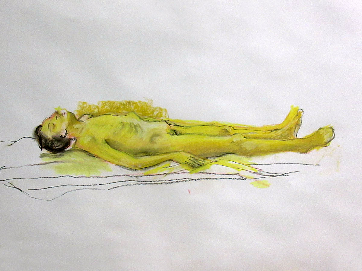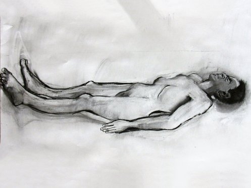 “I’ve had an idea,” said tutor Victoria Rance with a twinkle in her eye. Mild trepidation gripped me as I waited to hear what torturous contortion would be in store this evening as my long pose at The Conservatoire; yet I need not have worried. The requirement was merely that I lay perfectly straight on my back, echoing works such as ‘The dead Christ and three mourners‘ by Andrea Mantegna, and ‘Clay‘ by Jacob Kramer.