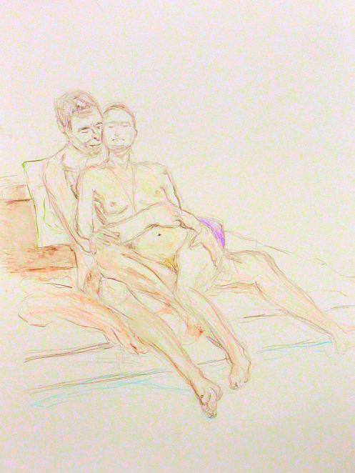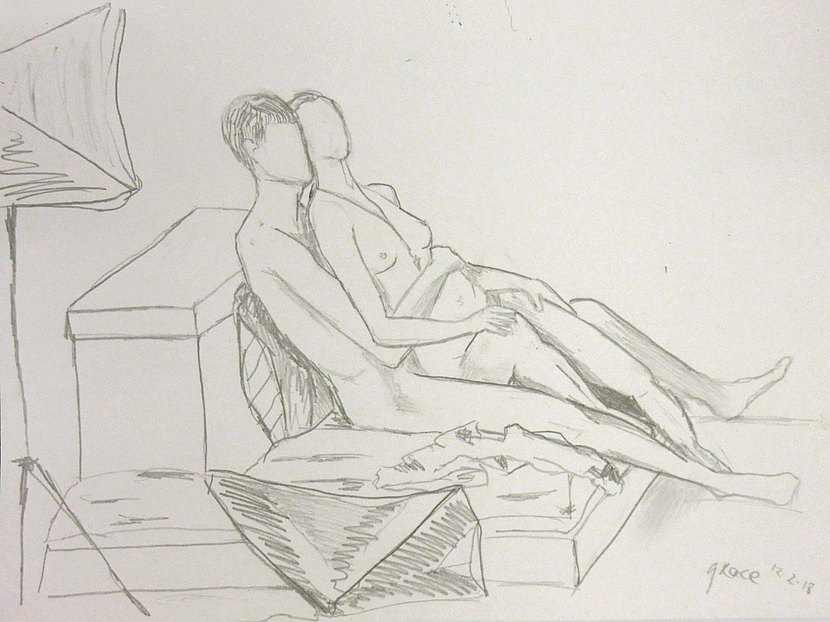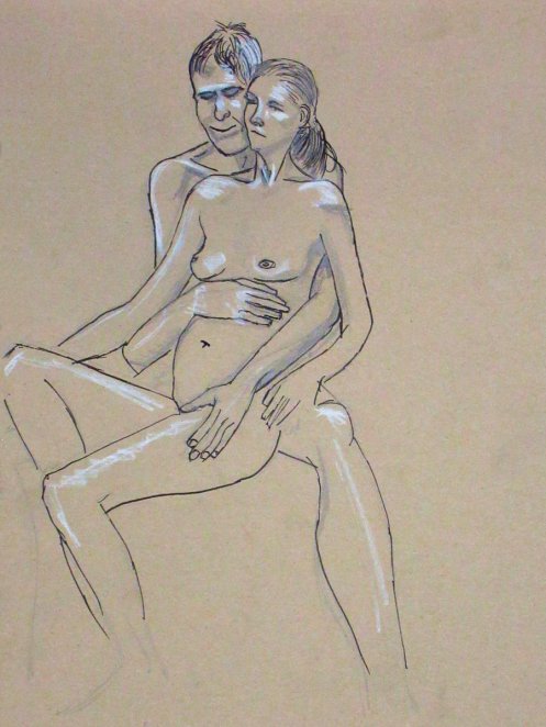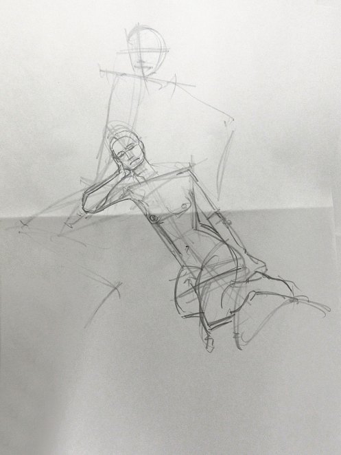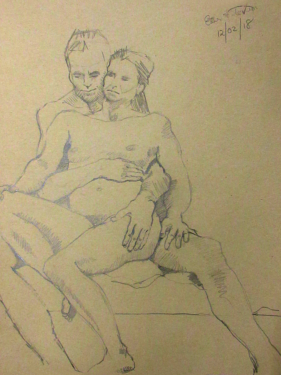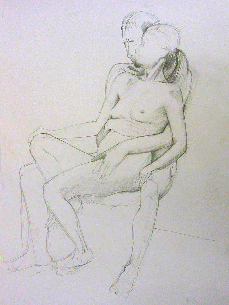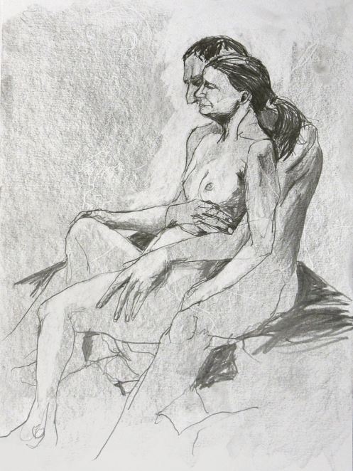 Our closing pose of the session lasted 45-minutes with a stretch break about halfway though. We somehow managed to make this seated embrace rather less comfortable than it ought to have been, but never mind! We were well looked-after, kept warm, and managed to inspire some lovely art.