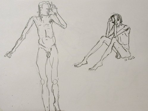 Two poses of 25-minutes brought the evening to its conclusion. A Simple Minds CD, played during the first half, had been swapped for unspecified material. I recognised it as Jean-Michel Jarre but to the artists it was Space Invaders so between poses we switched to Moloko. All very nice… as were the kind words and compliments offered at the end of the session. This is a cave with a warm heart.