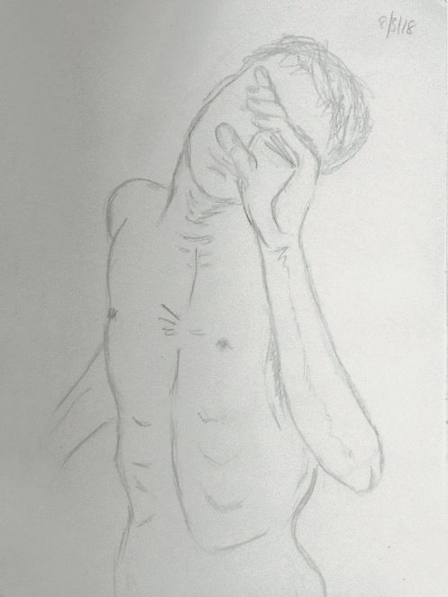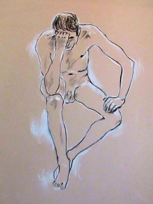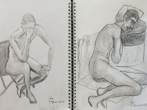 A return to posing at cave in Pimlico was just the tonic I needed. It had been a busy day, with patchy slumber the night before, so to re-immerse in the life drawing scene among this welcoming community was genuinely uplifting. We started a few minutes late as a couple of regulars had messaged organiser Karen to say they were on their way. No problem, and it suited my train times to add a few minutes extra at the end.