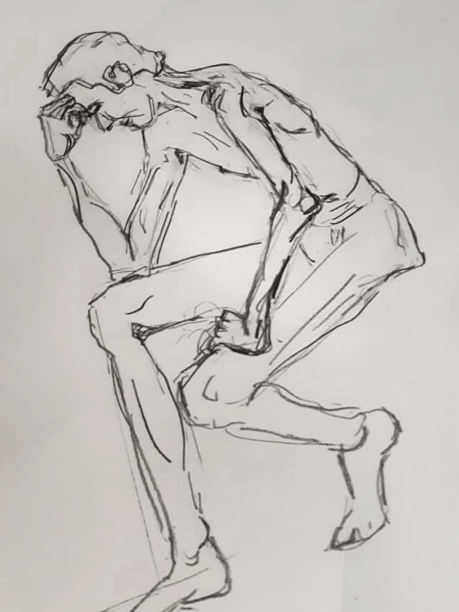 A return to posing at cave in Pimlico was just the tonic I needed. It had been a busy day, with patchy slumber the night before, so to re-immerse in the life drawing scene among this welcoming community was genuinely uplifting. We started a few minutes late as a couple of regulars had messaged organiser Karen to say they were on their way. No problem, and it suited my train times to add a few minutes extra at the end.