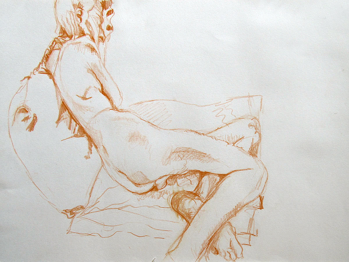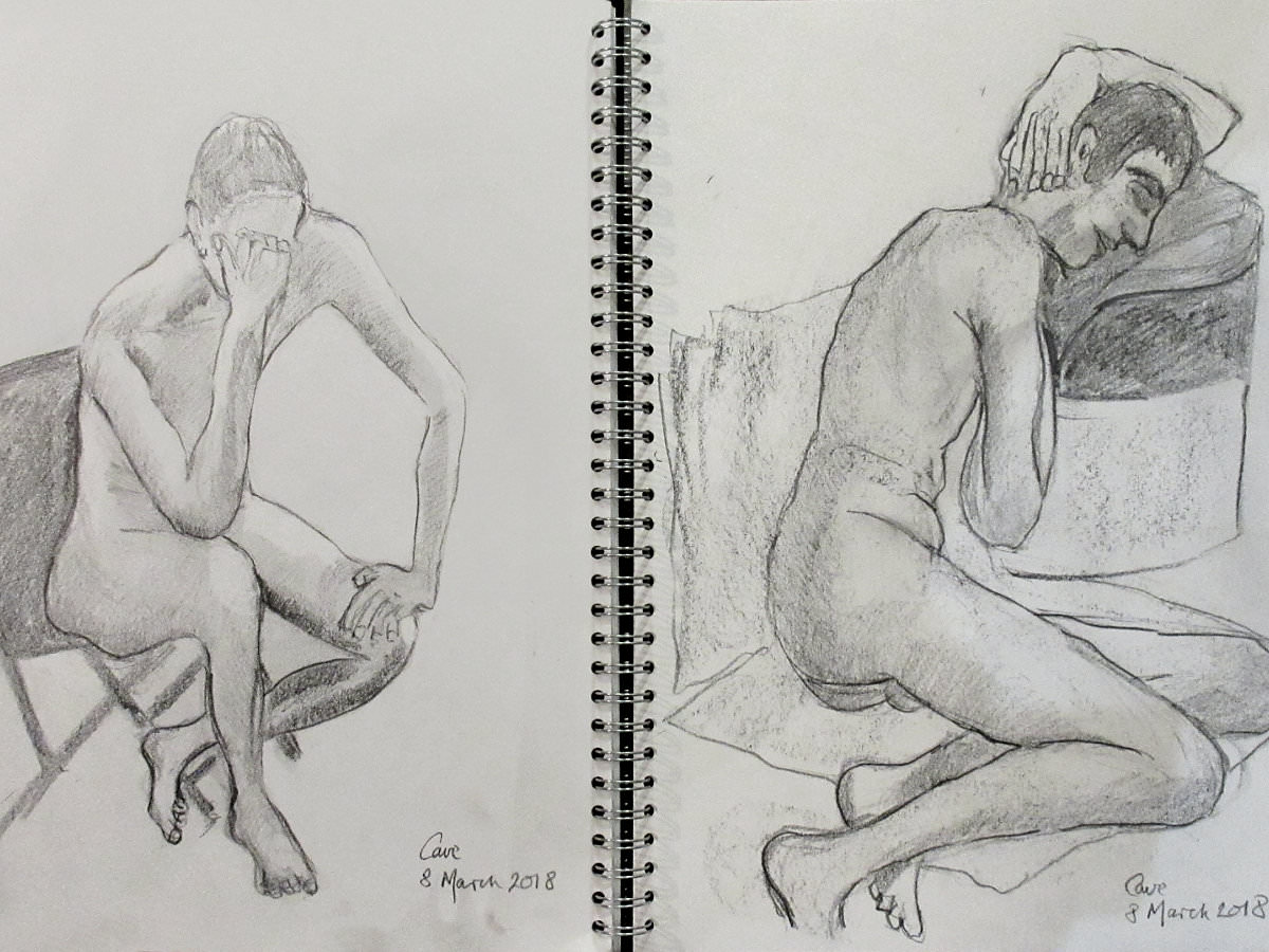 Two poses of 25-minutes brought the evening to its conclusion. A Simple Minds CD, played during the first half, had been swapped for unspecified material. I recognised it as Jean-Michel Jarre but to the artists it was Space Invaders so between poses we switched to Moloko. All very nice… as were the kind words and compliments offered at the end of the session. This is a cave with a warm heart.