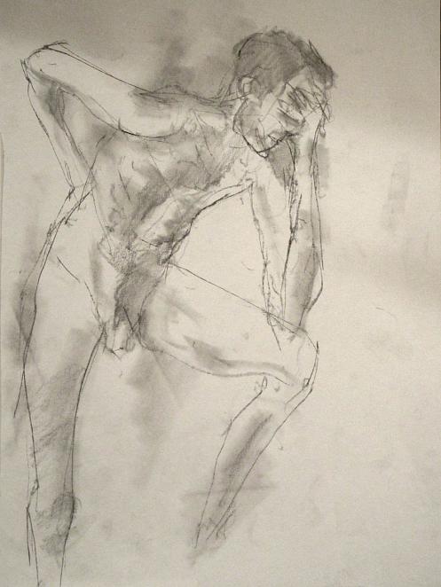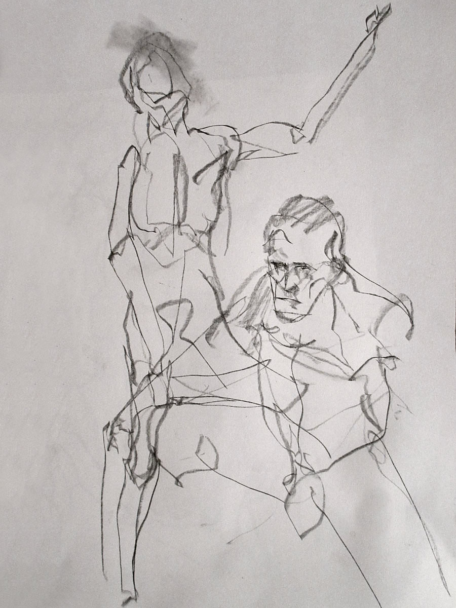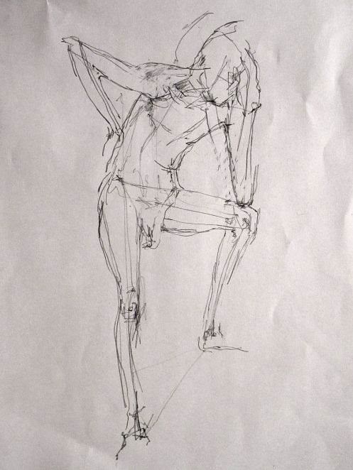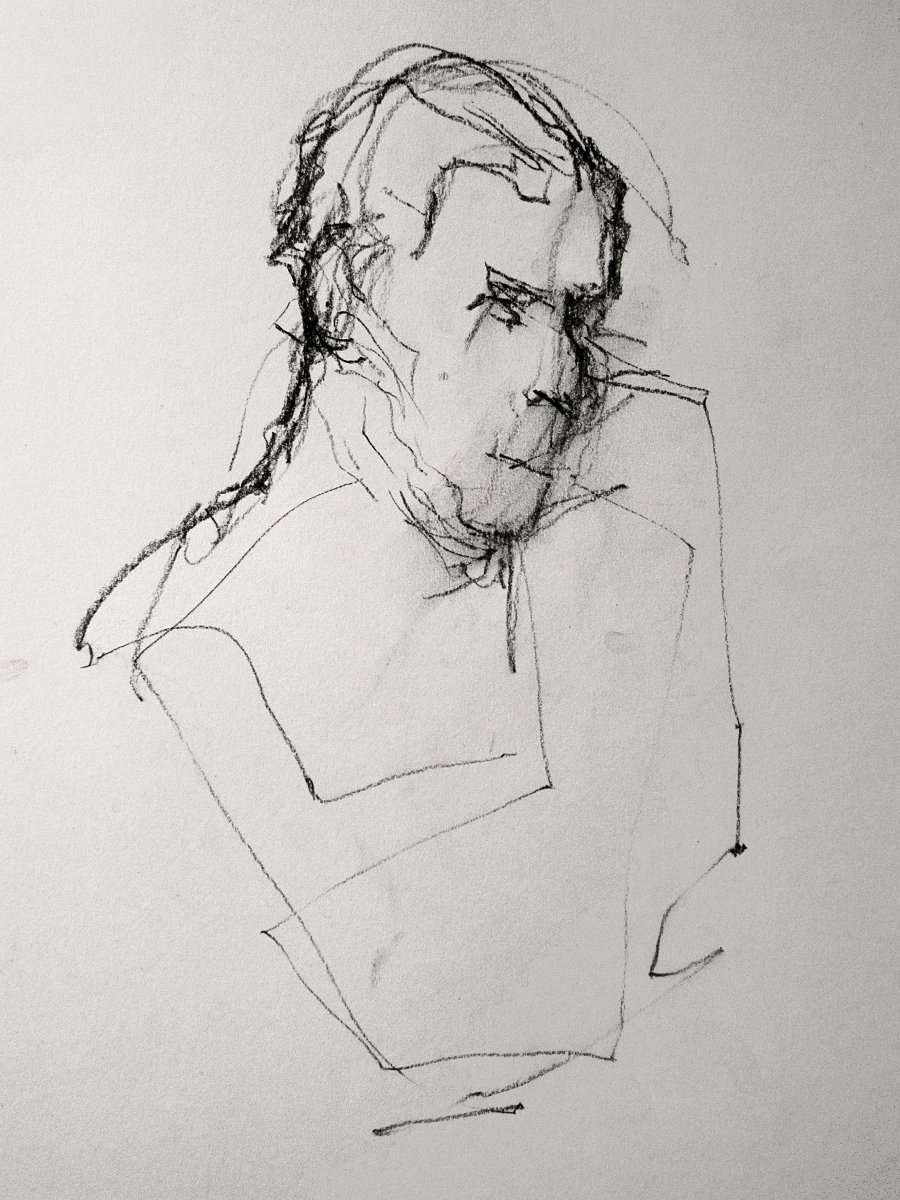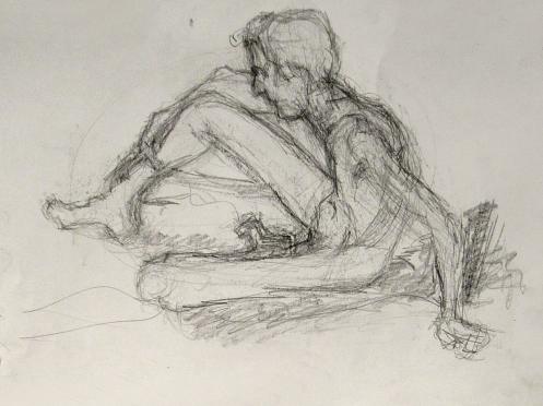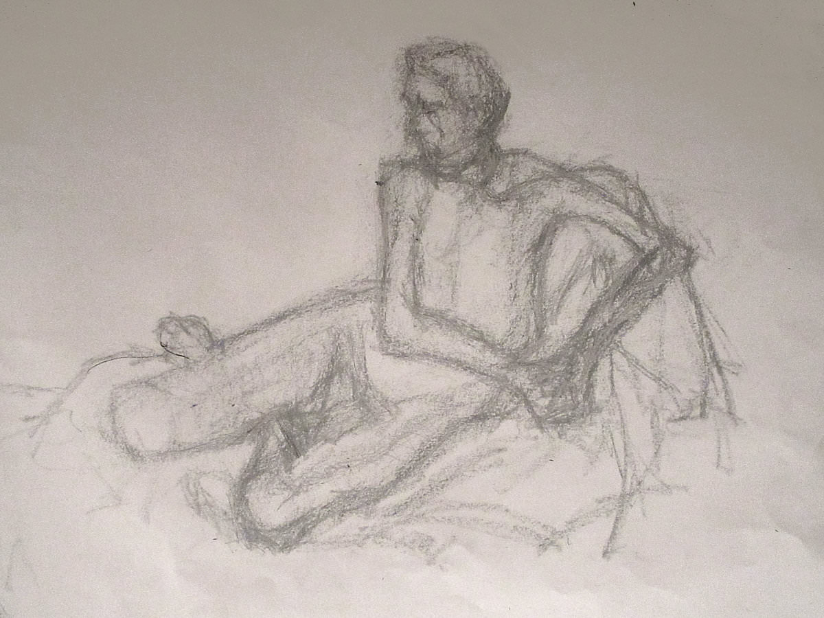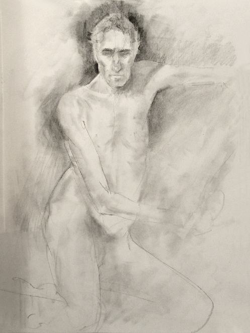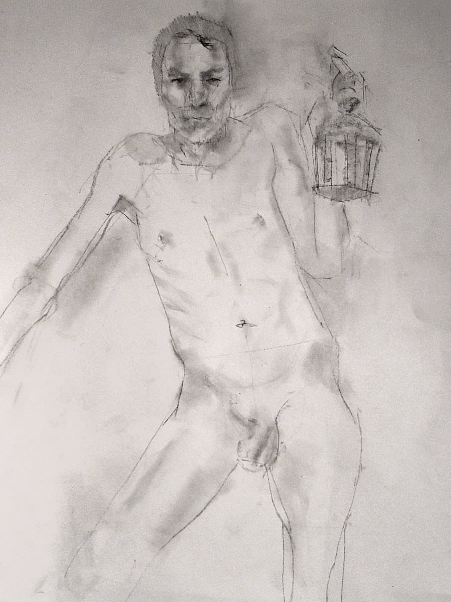 I’ve felt relaxed with this group from my very first time here. Like me, they favour quick poses but as this was the final session before Easter they decided to try some longer ones. After opening with five poses of 1-minute and one of 10-minutes, we finished the first half with two of 20-minutes. For the first of these, I held aloft a small lamp…