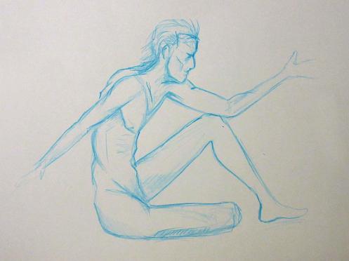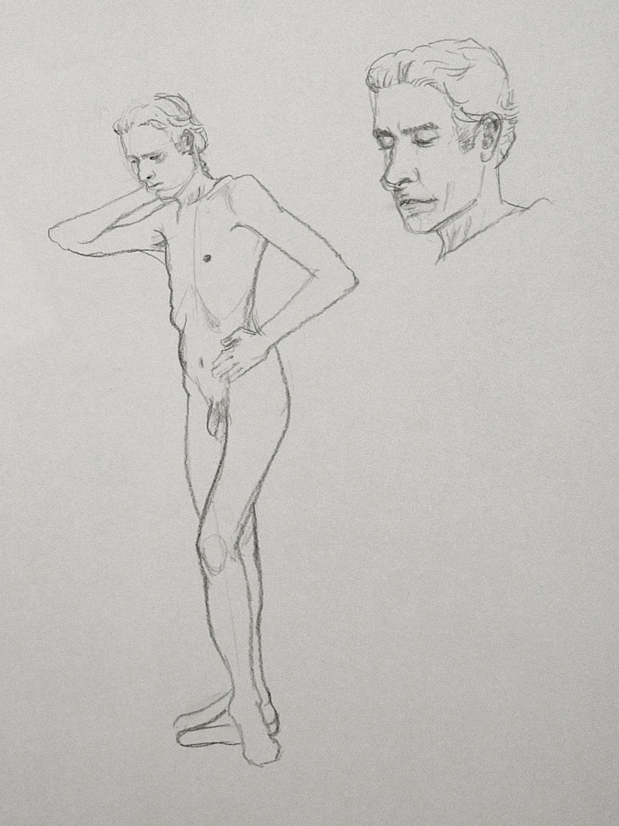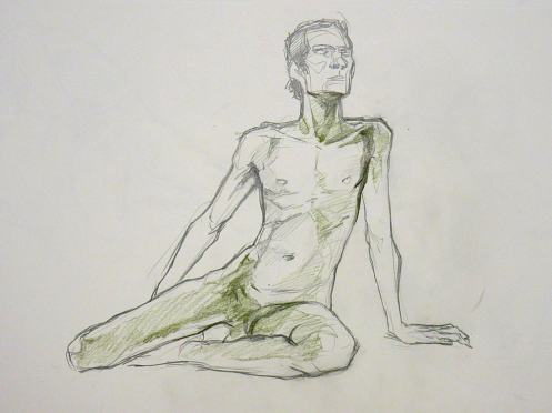After a break that lasted slightly longer than expected, we had time for two 20-minute poses that would complete the session. First I sat side-saddle on the floor and tipped back on my hands, numbing my left arm in the process. Finally I stood with one hand on my neck and the other (numb) hand on my hip. There were smiles at the end, and hopefully everyone was happy. Certainly I was… even in such a curious environment.