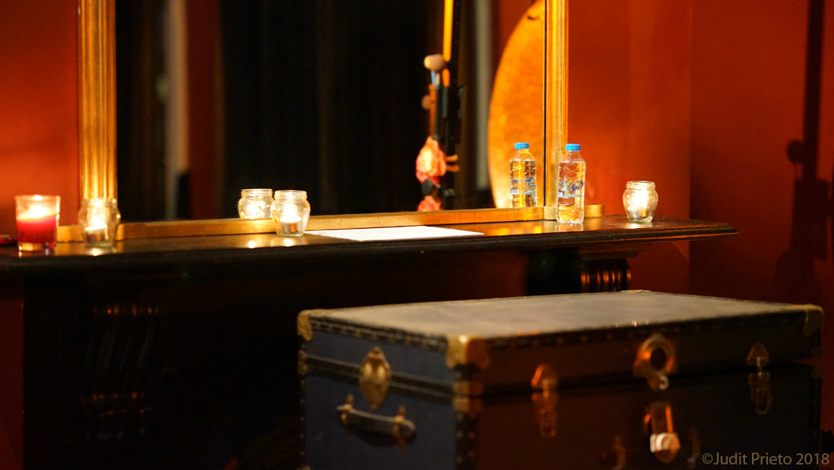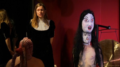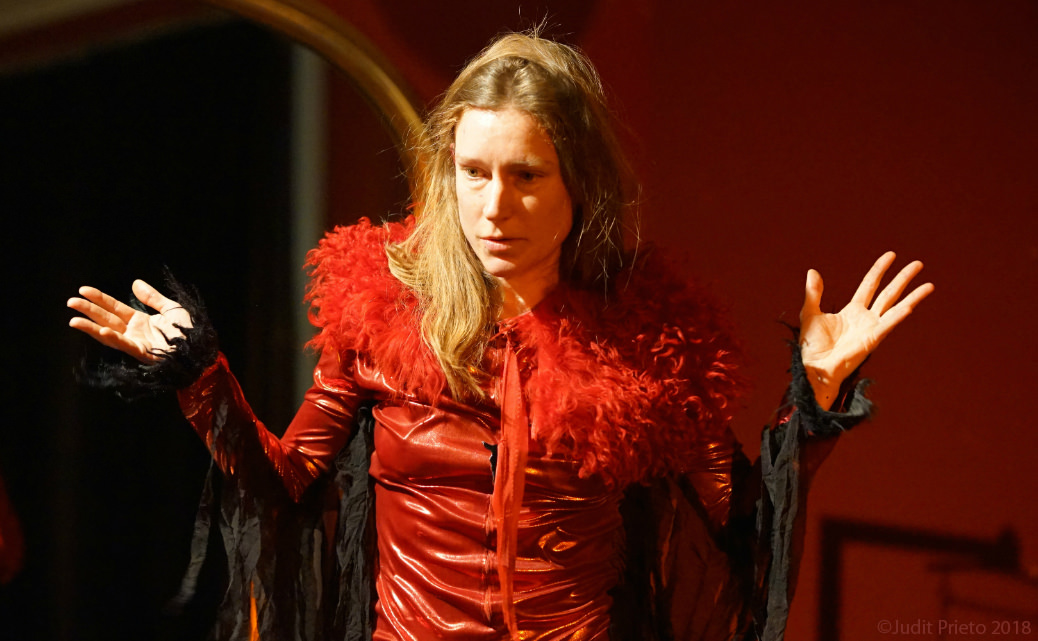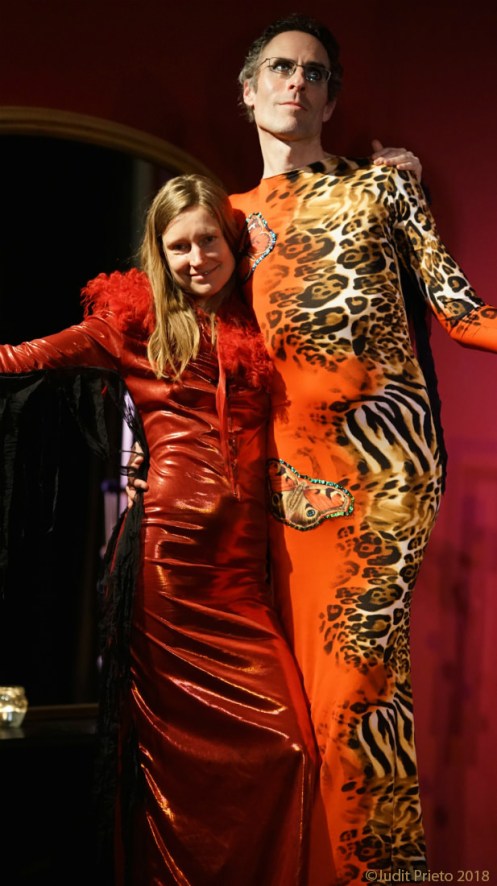 Esther’s dress and mask, together with my own and other masks in the show, had all been handmade by genius designer, Estelle Riviere Monsterlune. So exquisite was the crimson devil outfit worn by Esther whilst portraying her own fictional grandmother, that only the artist in her natural state could be an improvement. As Sarah gave a last rendition of ‘We’ll meet again‘, so Lady Summerisle peeled out of layers and began to share her own stories as a modern-day life model.