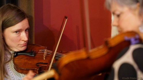 There were four wicker persons in total, starting with four volunteers creating a head, a body and two arms. By the end they’d gained two legs and even had myself appended as a spare limb. Esther and Sarah played ‘Gently Johnny‘ on violins, and later Sarah played pipes while Esther sang ‘How do (Willow’s song)‘. It was a magical, beautiful finale to a special performance that had been embraced in a warm, joyful spirit of body positivity. Esther gave her thanks and took heartfelt applause. Bravo, Girl in Suitcase!