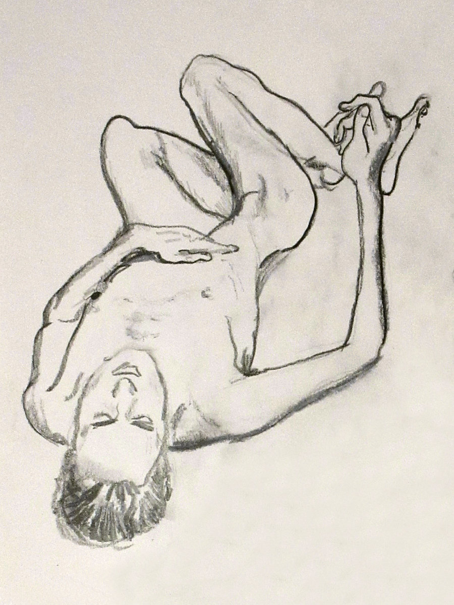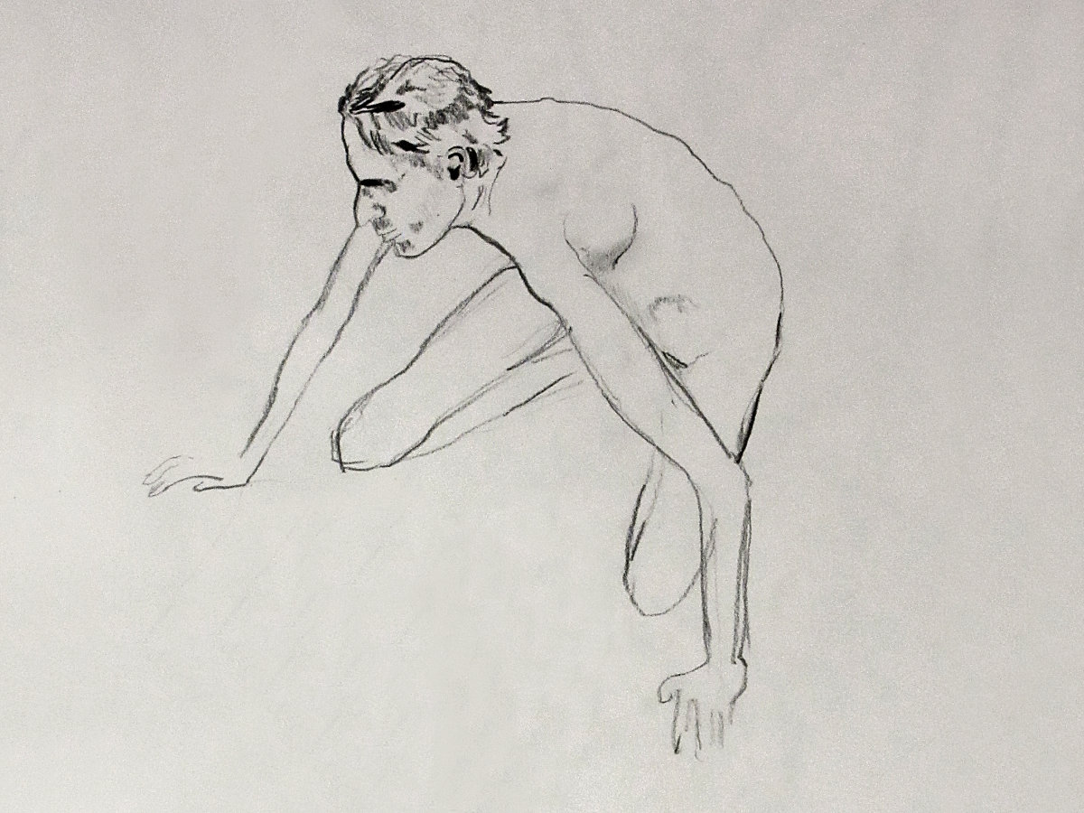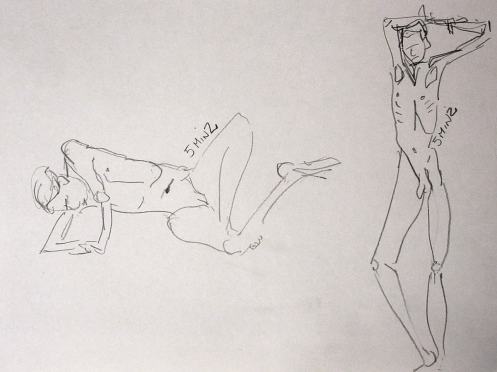 Five 1-minutes poses, two 5-minute poses and two 10-minute poses occupied the first half. With my back to a wall I went through a semi-spontaneous repertoire of standing, kneeling, squatting and semi-reclining positions. At the interval, we all got mugs of tea and – pure bliss – mini scones with fresh clotted cream and jam. Such an unexpected treat… it’s the simple pleasures. Two 25-minute poses occupied the second half.