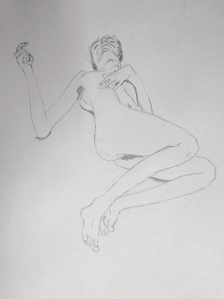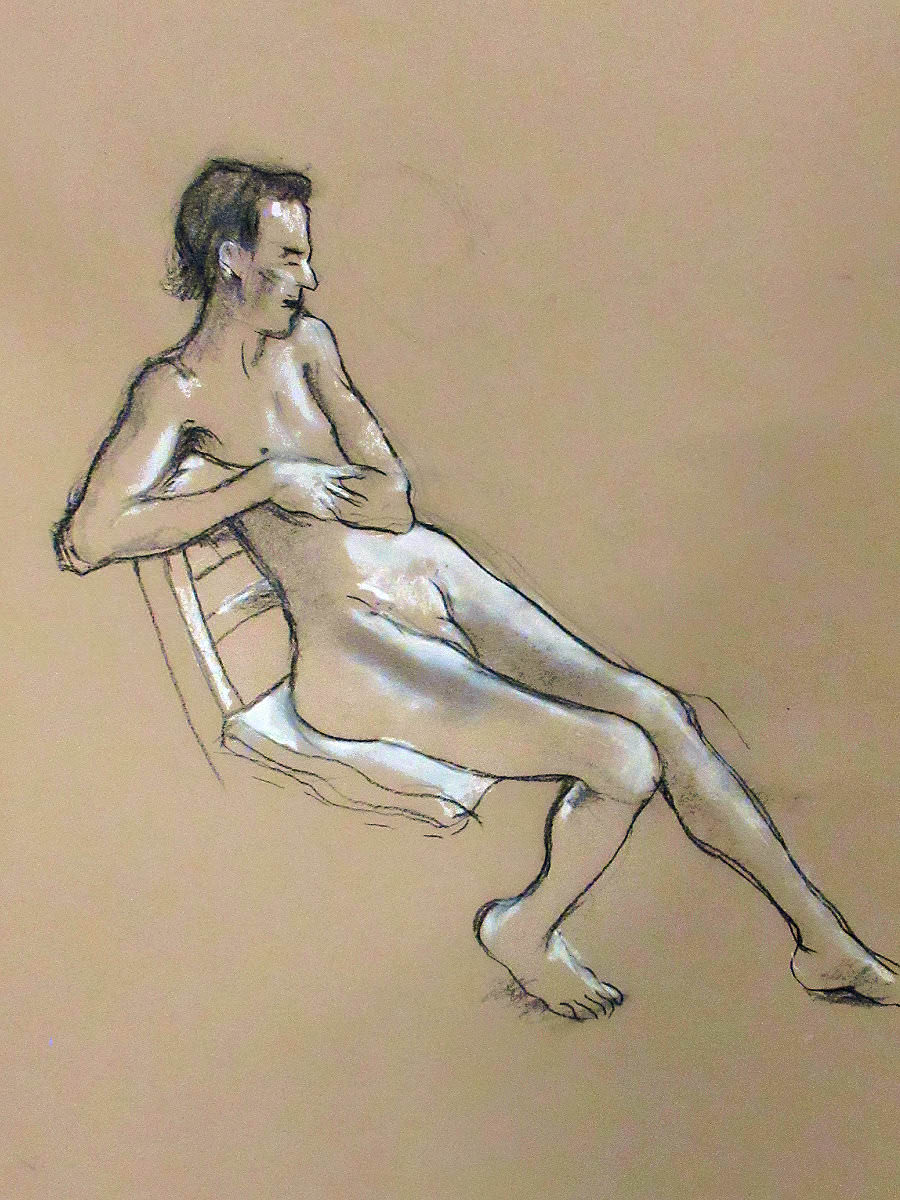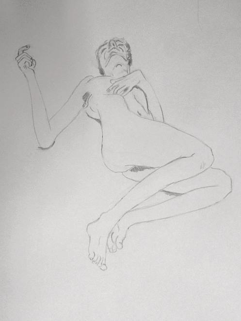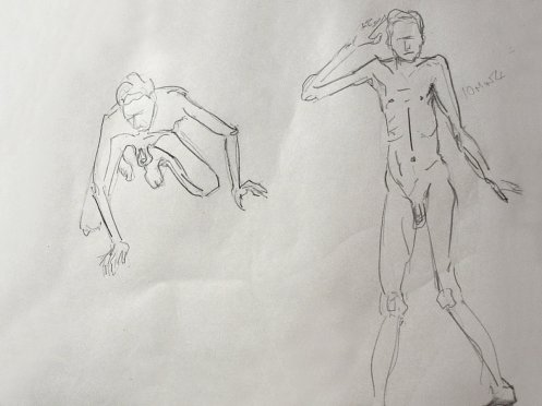 Life drawing at cave has moved from Thursday evenings to Tuesdays, and as a result my booking for the end of May became two: first at the beginning of May then another at the beginning of June. I arrived early, rang the outer bell, and peeped Chad-like over the gate. As always, I was greeted warmly by cave supremo, Karen and we bantered whilst waiting for artists to breeze in. When all had settled, I started with short poses.