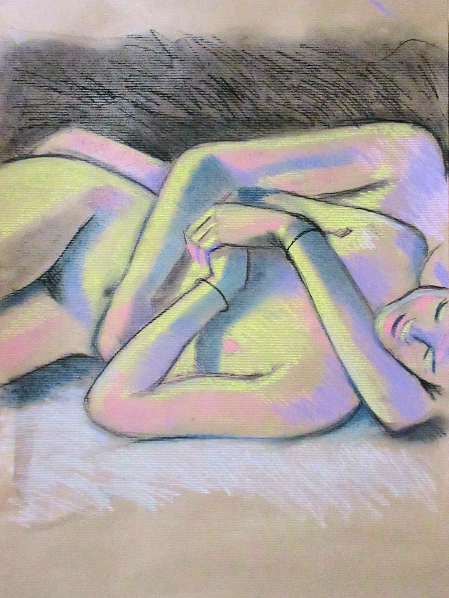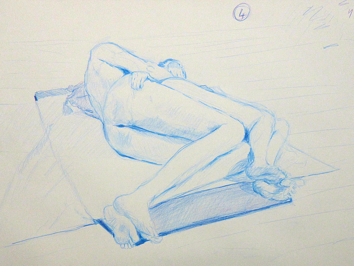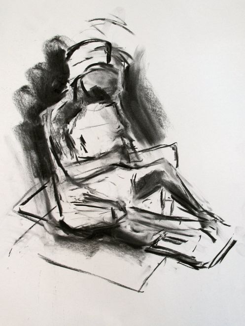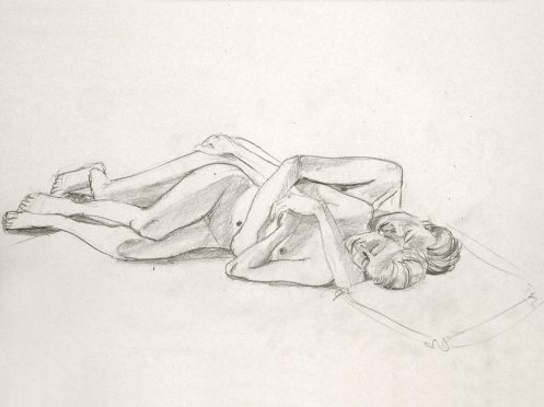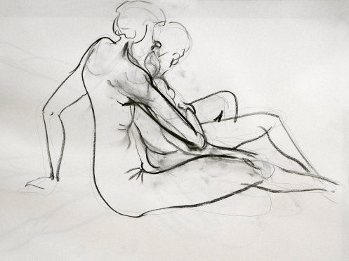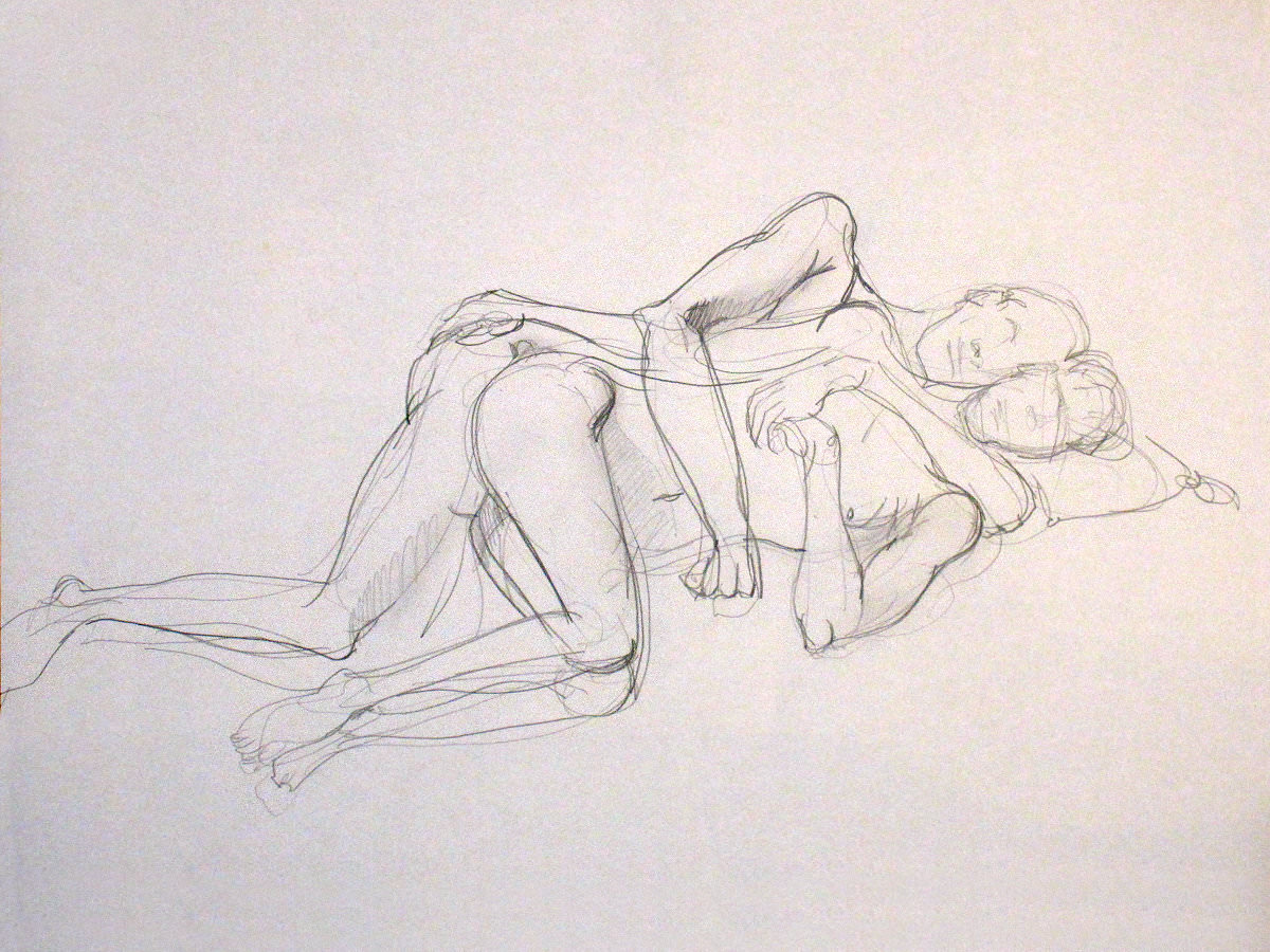 After an interval for refreshments, we finished the session laying down with our bodies spooned together for an hour. It looked serene but by halfway we were into all sorts of numbness and pain. With hindsight each pose was more suited to the pose time that preceded it. But never mind! It was great to model as a couple again, to catch up with Jenny, to inspire the creation of such wonderful drawings and to socialise afterwards.