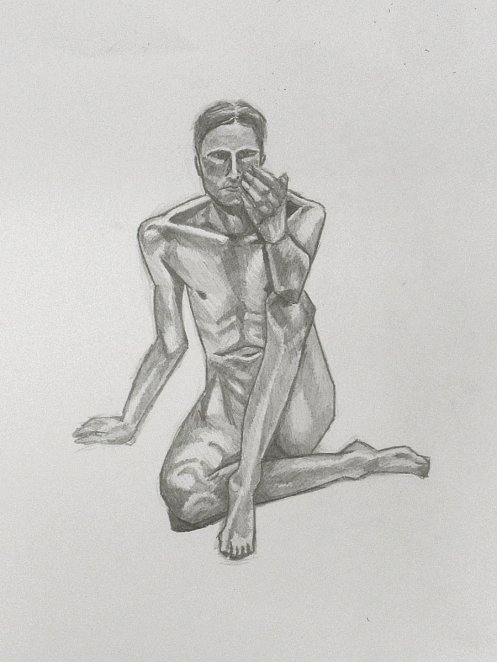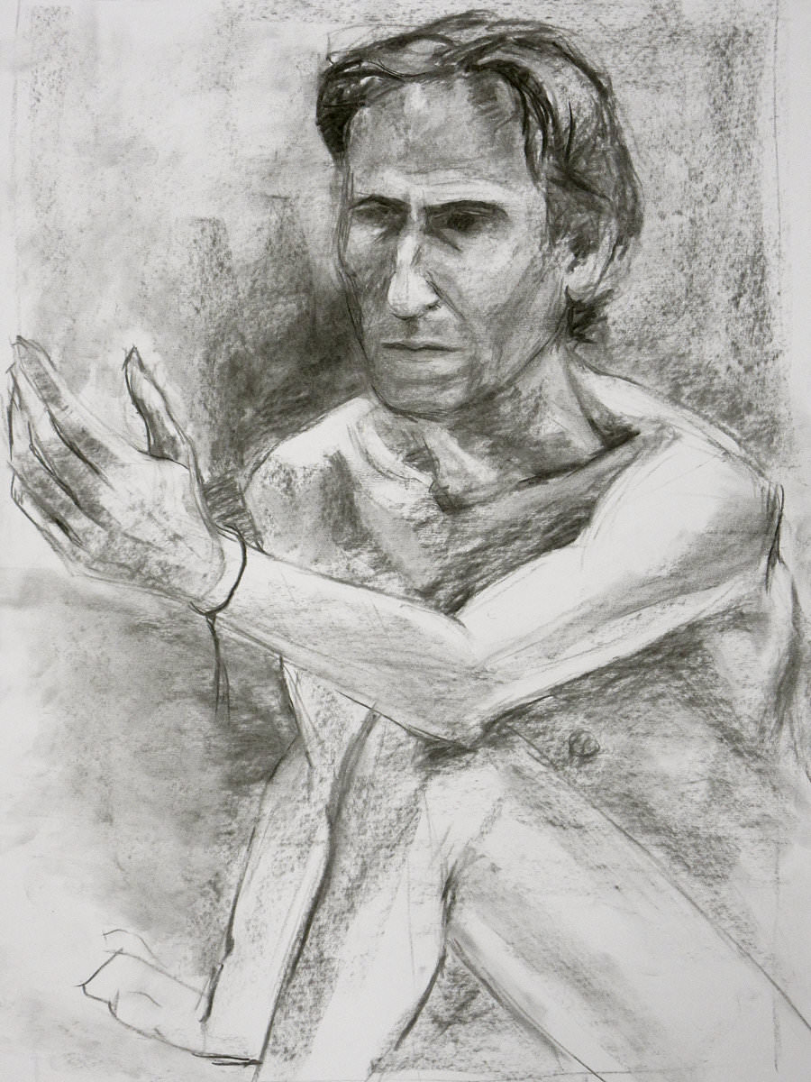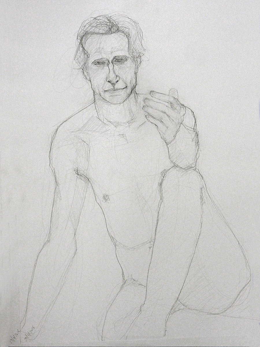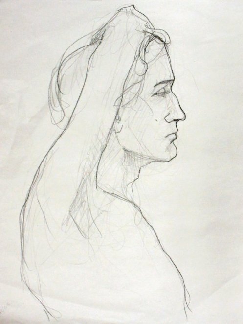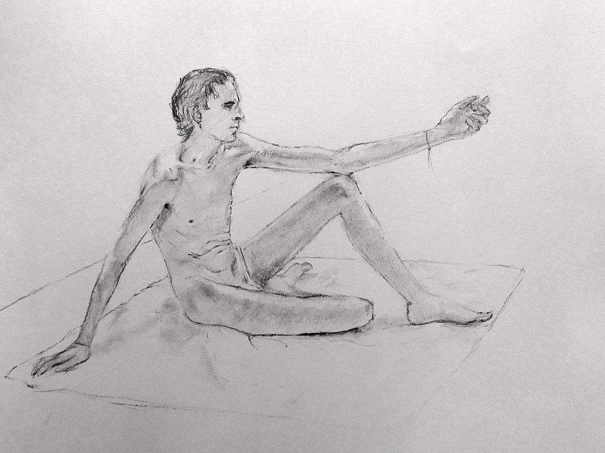 Sunny it may have been, but we would be working in one of the basement community rooms. Familiar faces were on the scene as I arrived and took position in a horseshoe of chairs. This was a long-pose session but we started with three 5-minute warm-ups.