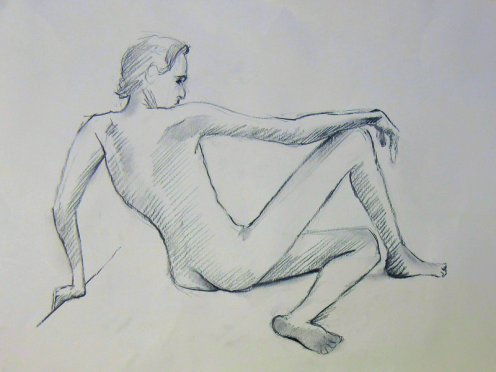 ‘Adult Art Showcase, Friday 20th July‘, proclaimed the notice on a sandwich board outside The Conservatoire, Blackheath. The free entry and a free glass of wine were tempting but what really caught my eye was the portion of a life drawing in the top left corner. Hey, that’s me! Drawn here by Gareth Williams on 4 December last year.