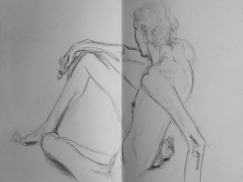 ‘Adult Art Showcase, Friday 20th July‘, proclaimed the notice on a sandwich board outside The Conservatoire, Blackheath. The free entry and a free glass of wine were tempting but what really caught my eye was the portion of a life drawing in the top left corner. Hey, that’s me! Drawn here by Gareth Williams on 4 December last year.
