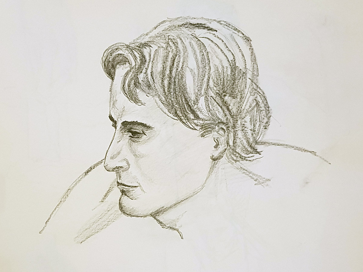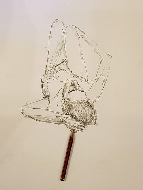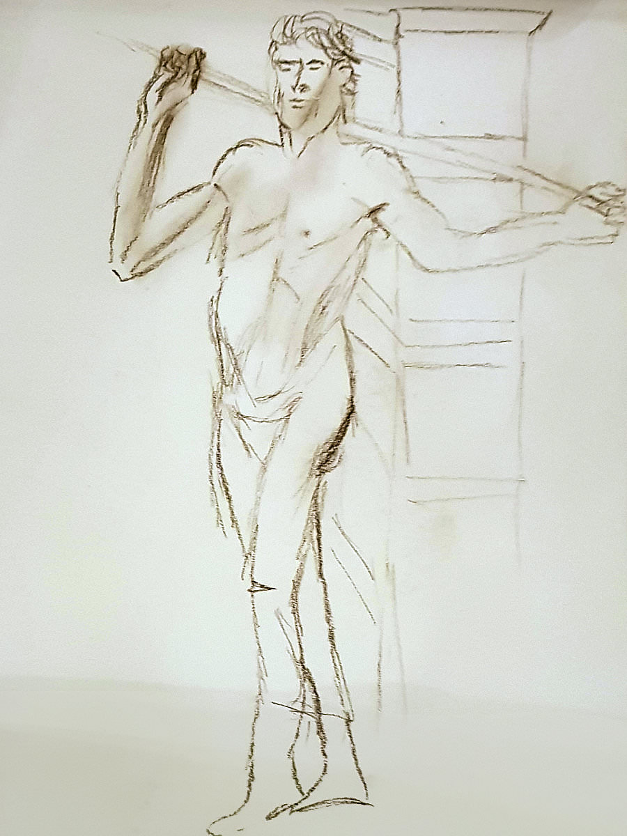 Promptness was critical as we started with the shortest poses: 1-minute, 2, 3, 4, and 5-minutes. Anybody turning up quarter of an hour late would have missed exactly half our evening’s offerings. I finished the first period with two 15-minute poses, and one of 10-minutes. After the break, two 20-minute poses brought the session to a close.