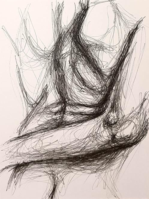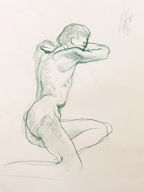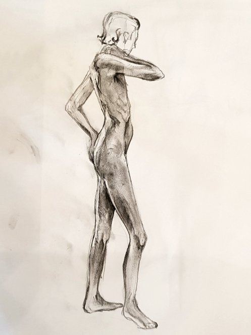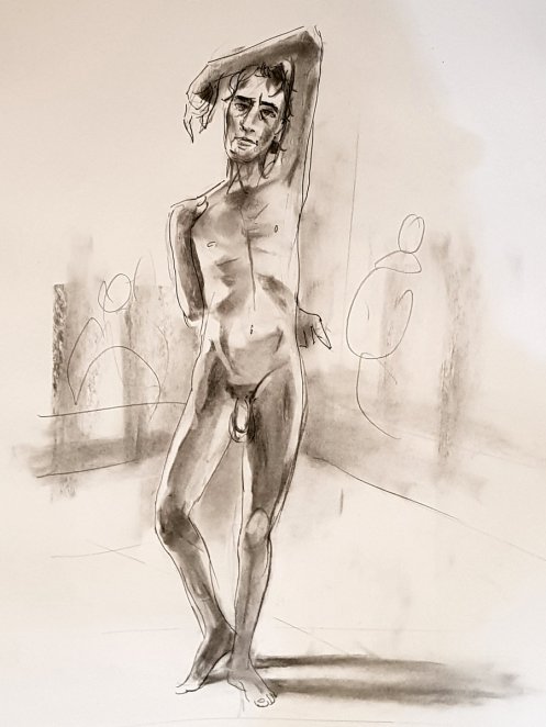 For my debut life modelling in a function room upstairs at the Royal Inn on the Park, I opted to begin with a new 10-minute pose: my right leg would be bent yet supporting my full weight, my left leg would also be bent and on tip-toe, and my left arm would be raised as if fending off danger from above. I should have foreseen the main danger was in fact an achy right leg that would fibrillate throughout the remainder of the first half…