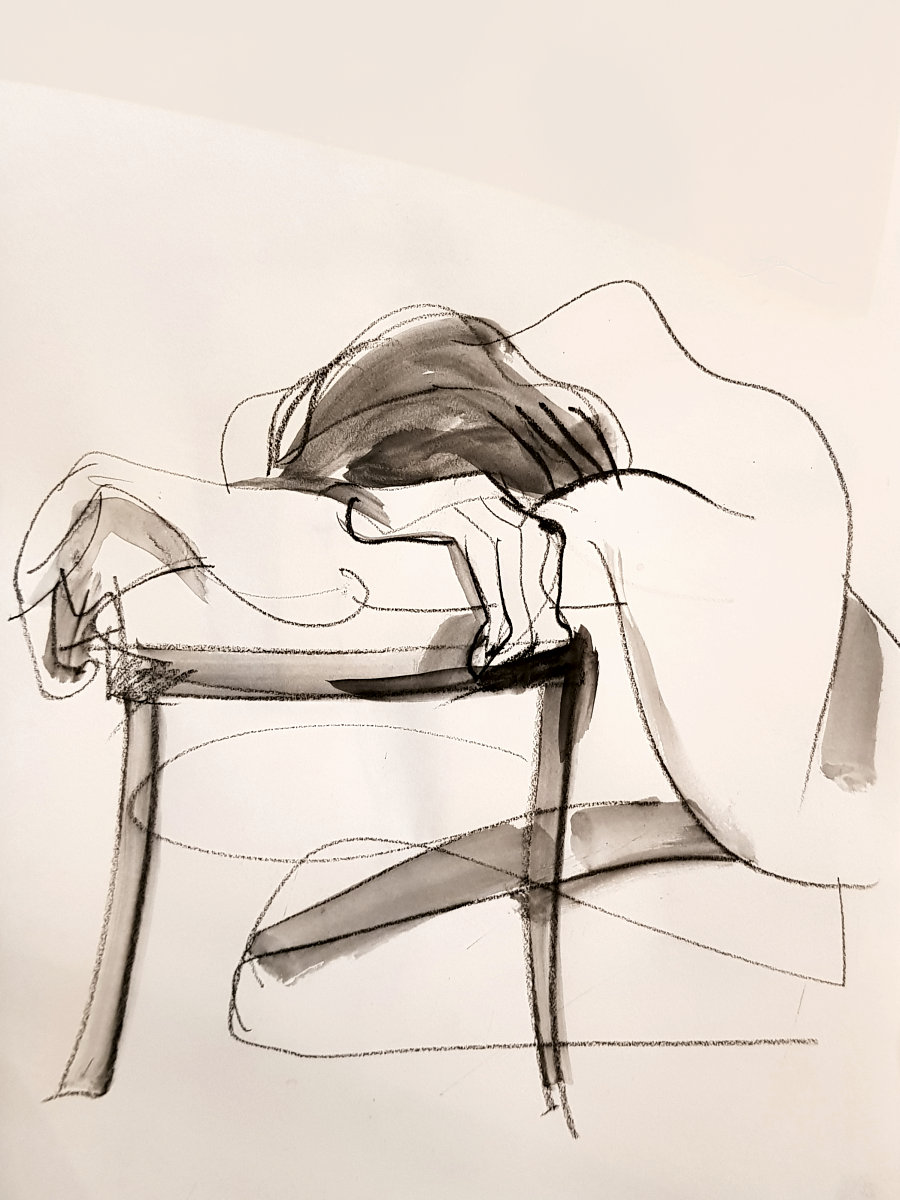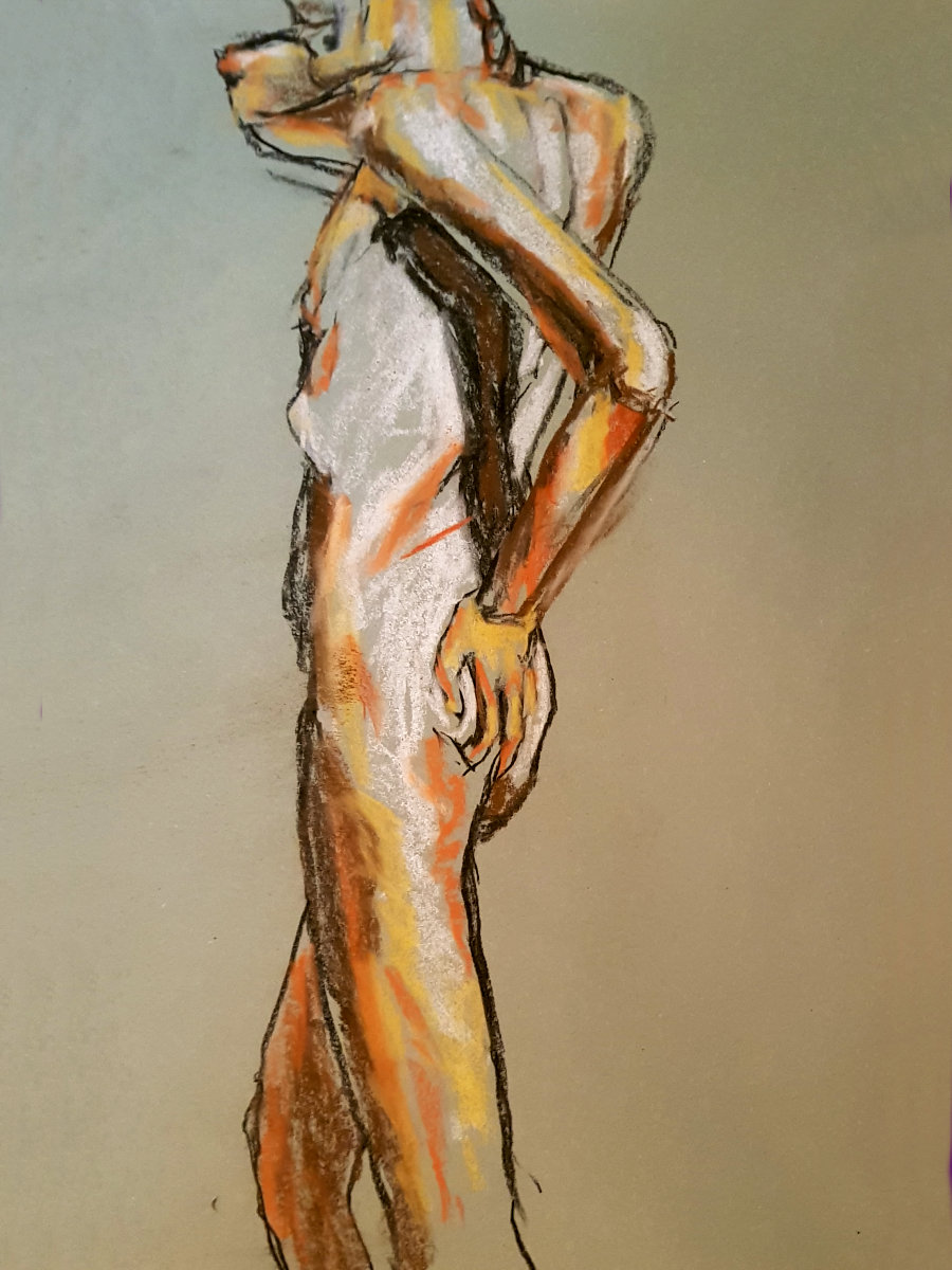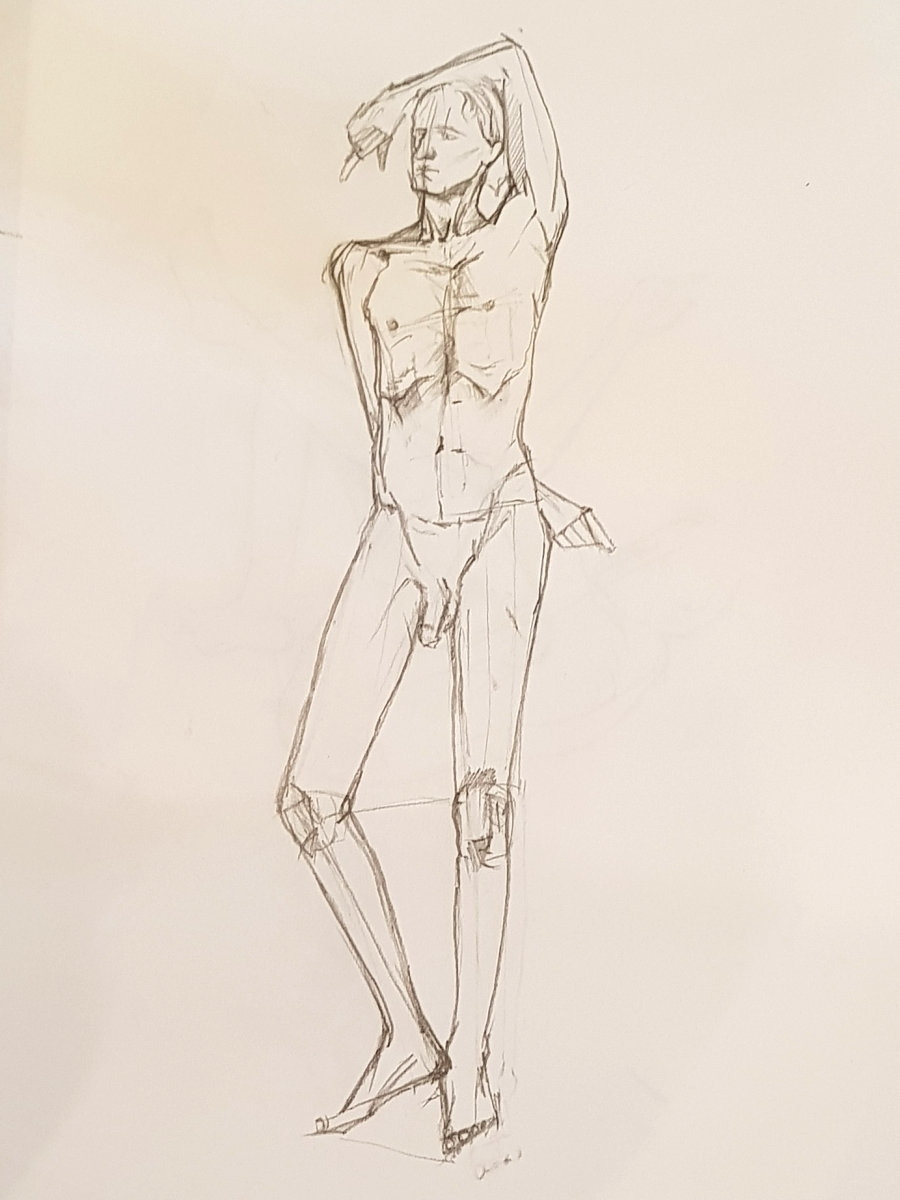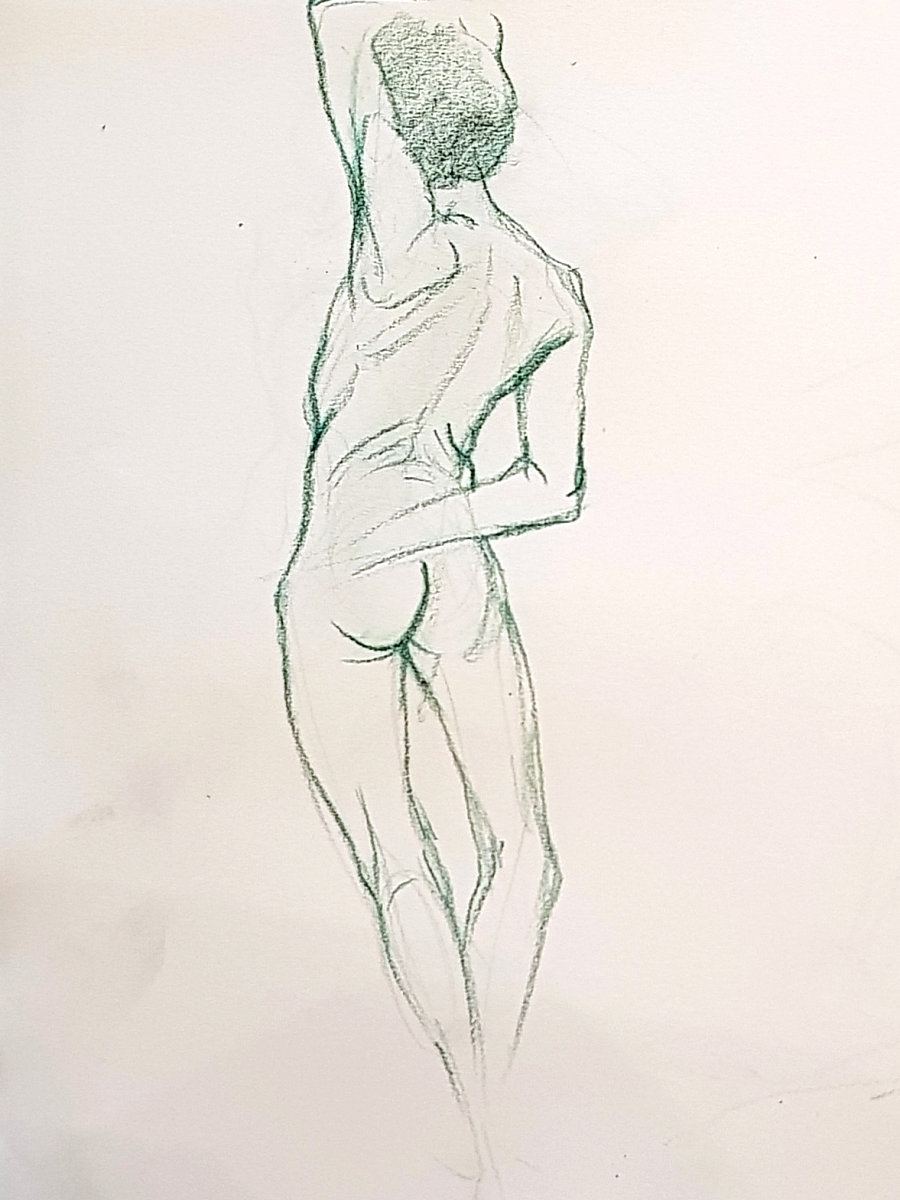 For my debut life modelling in a function room upstairs at the Royal Inn on the Park, I opted to begin with a new 10-minute pose: my right leg would be bent yet supporting my full weight, my left leg would also be bent and on tip-toe, and my left arm would be raised as if fending off danger from above. I should have foreseen the main danger was in fact an achy right leg that would fibrillate throughout the remainder of the first half…