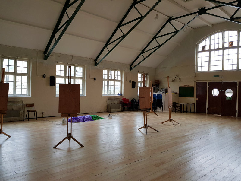 Lochaber Hall in Hither Green has had a make-over; a new floor and removal of a low false ceiling to reveal a greater window area above the main entrance that allows more natural light to flood the room. All in all, improvements conducing to good life drawing.