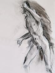 This 3-hour session opened with seven poses of 5-minutes each, followed by a single pose of 20-minutes. I hadn’t reckoned on this being the first chilly day of autumn. Not a problem for the 5-minuters, but I felt the bite of bitter cold whilst standing for 20.