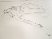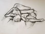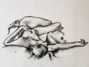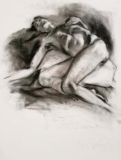 The remainder of the session would be occupied by one 2-hour pose, split into halves of an hour each. I accepted the offer to recline, and even more gratefully accepted the warm air blowing from heaters that were switched on at either end of my twisted form.