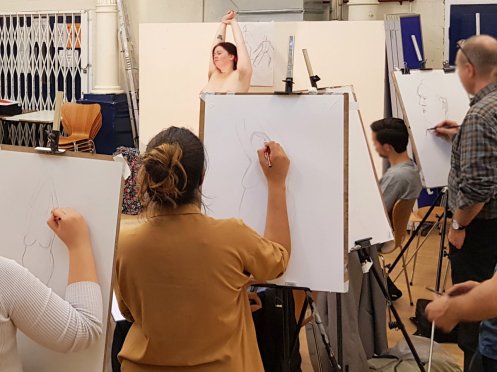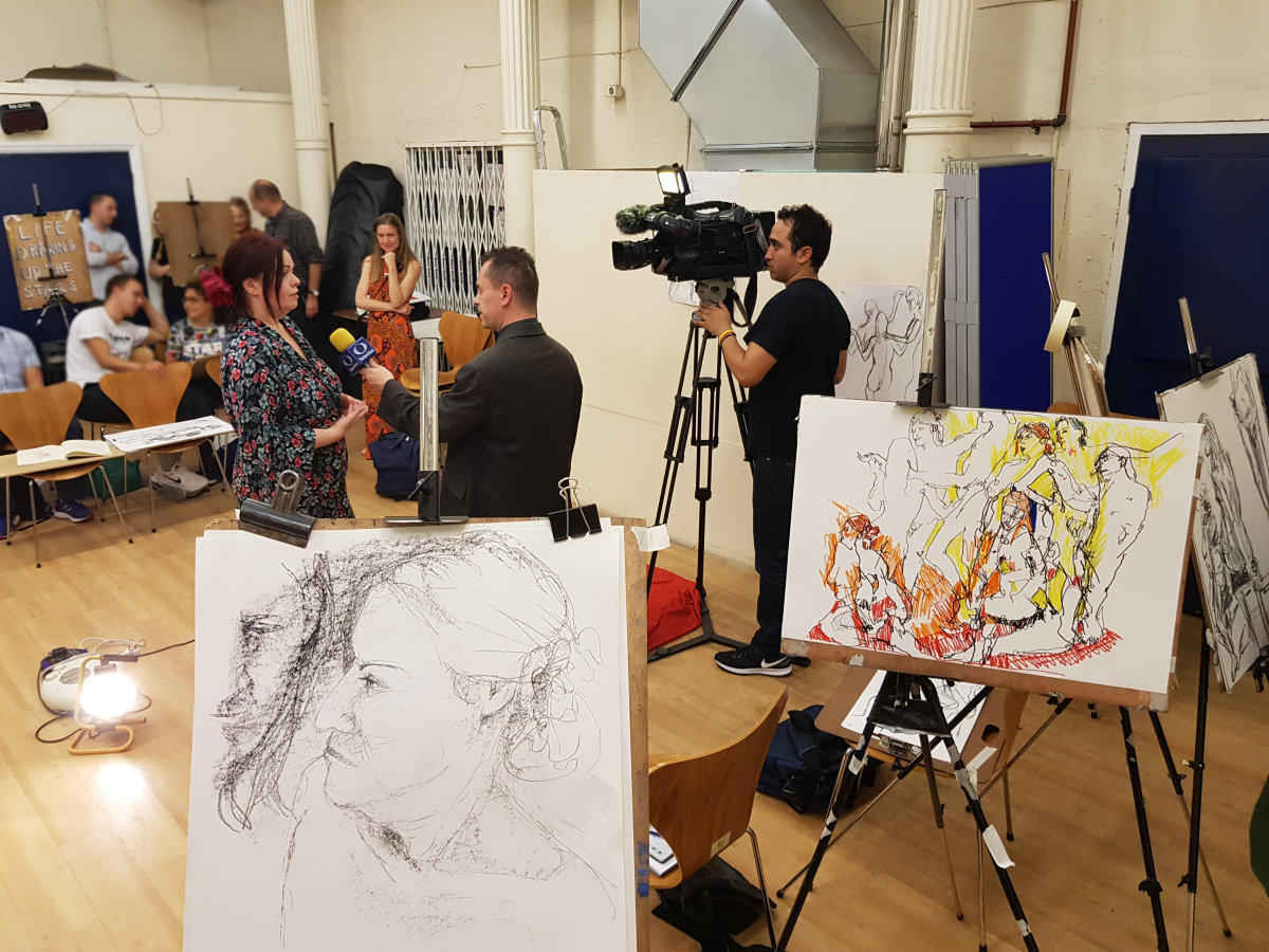 Televisa had asked to interview Esther following widespread UK media coverage of her Spirited Bodies campaign to promote life drawing amongst teenagers as a means of combating unrealistic body ideals fuelled by social media. This aligned nicely with her booking to model for London Drawing so dots were joined and here we were. Esther spoke to camera before the session started, then Valentina struck the opening pose.