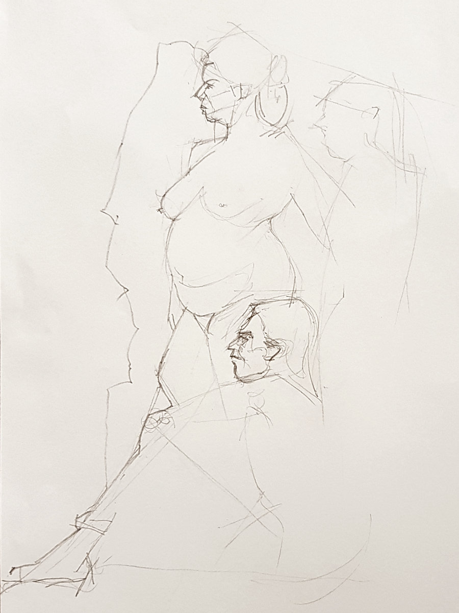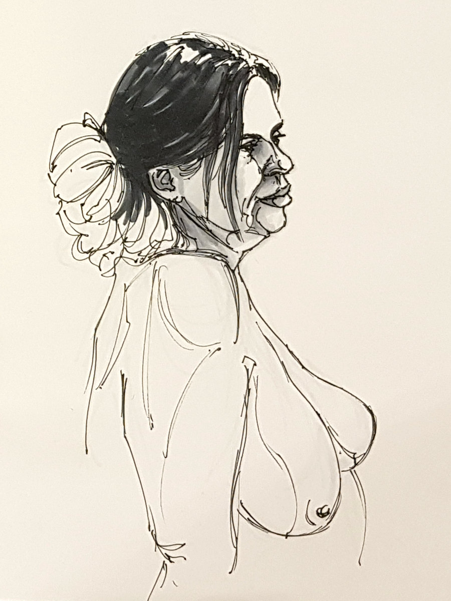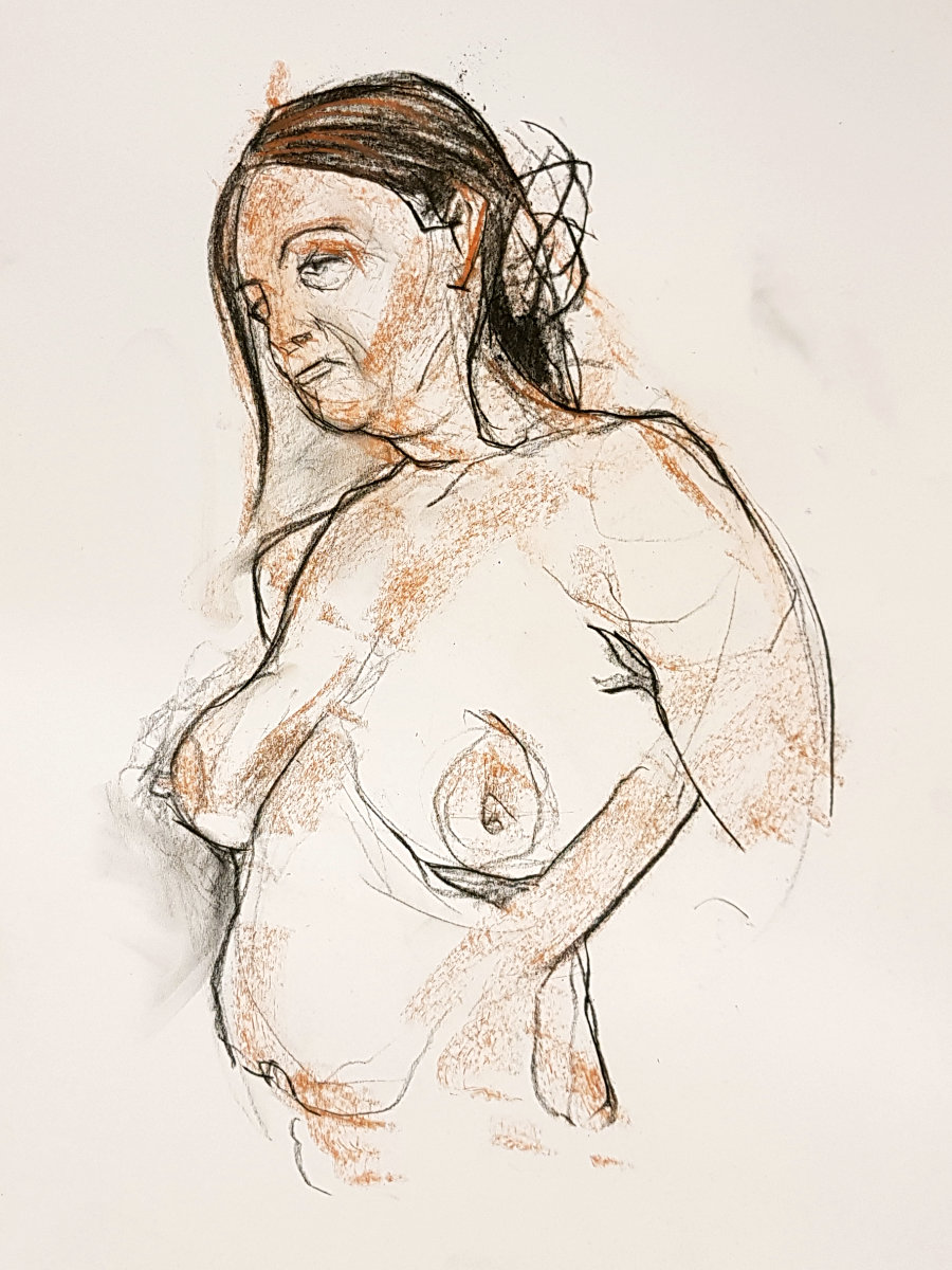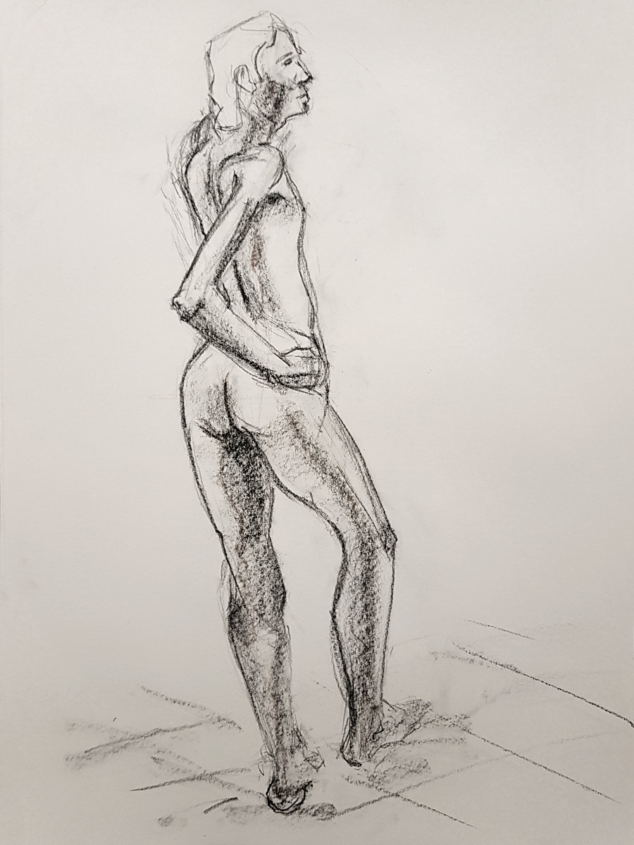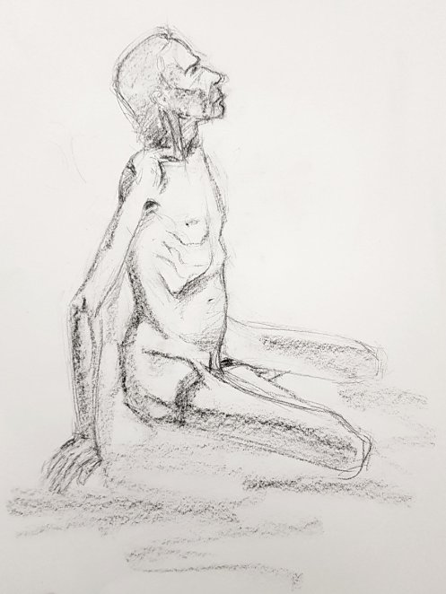 In tune with the session’s theme of body acceptance and body positivity, we remained quite organic and naturalistic throughout our poses. This seemed to be appreciated by the artists, who could relax with our relatable comfort and physical diversity. I hope the message continues to spread around the world: that observing and drawing the human body, nude and natural, in a safe space, can be of social as well as artistic benefit.