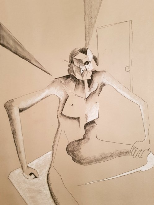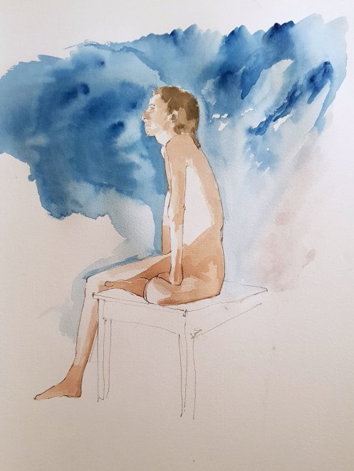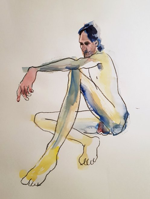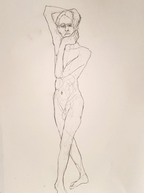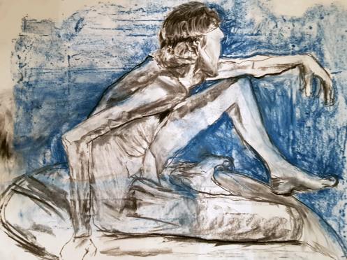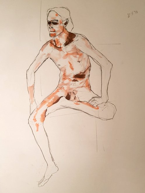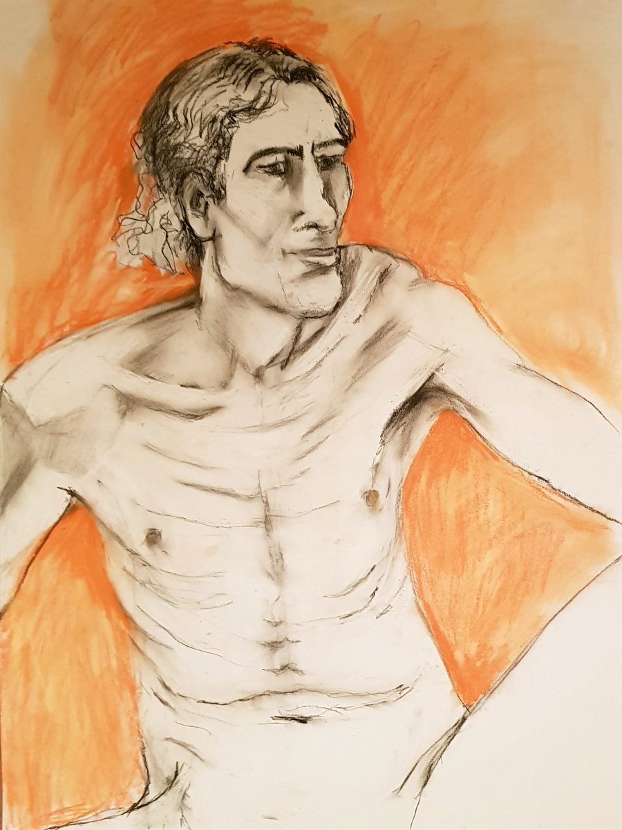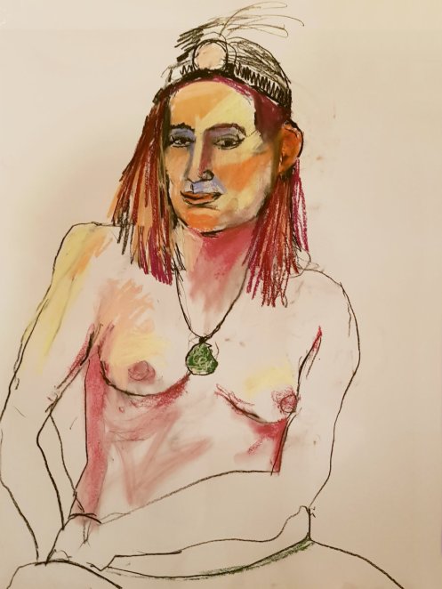 After a break and room-swapping, Esther was to finish with one long pose whilst I was to provide two 20-minute poses. At least that was the idea. I had been in position for a little while when some late returners from bar requested that mine be a long pose too.