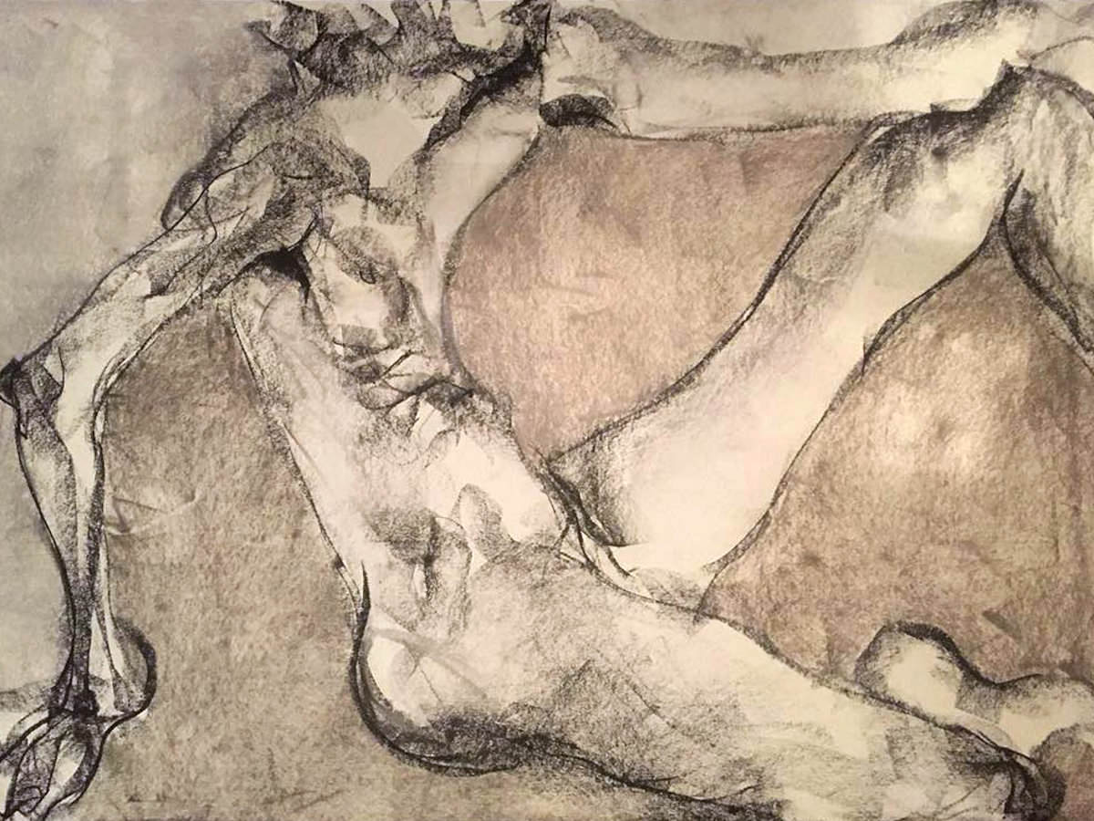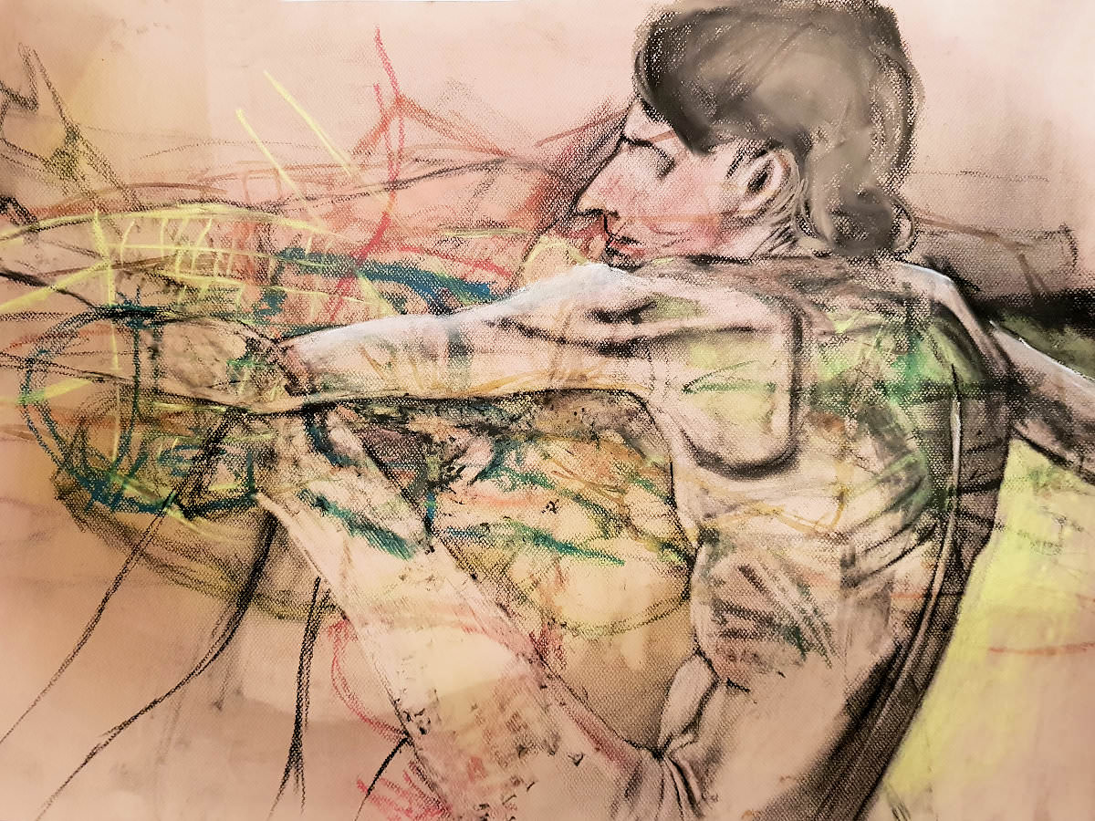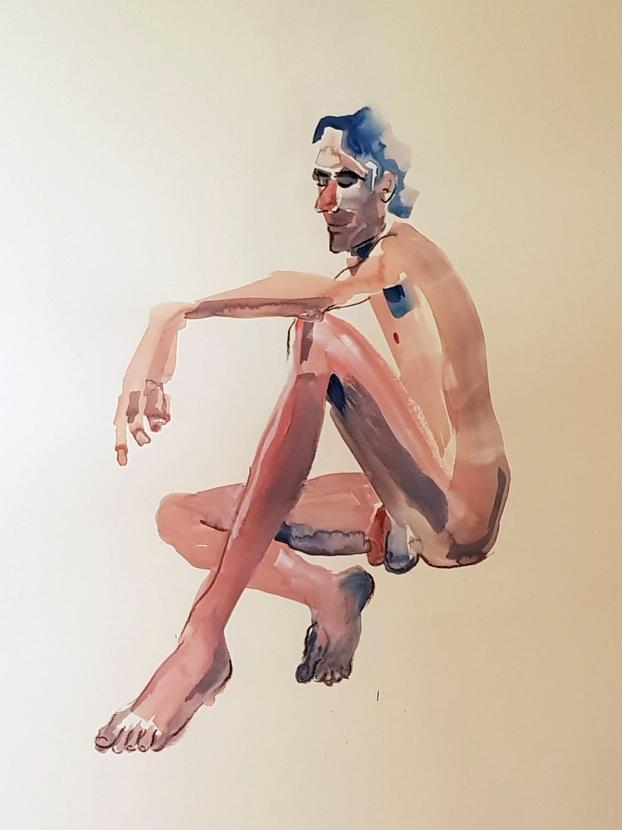 After a break and room-swapping, Esther was to finish with one long pose whilst I was to provide two 20-minute poses. At least that was the idea. I had been in position for a little while when some late returners from bar requested that mine be a long pose too.