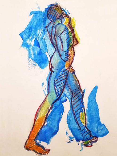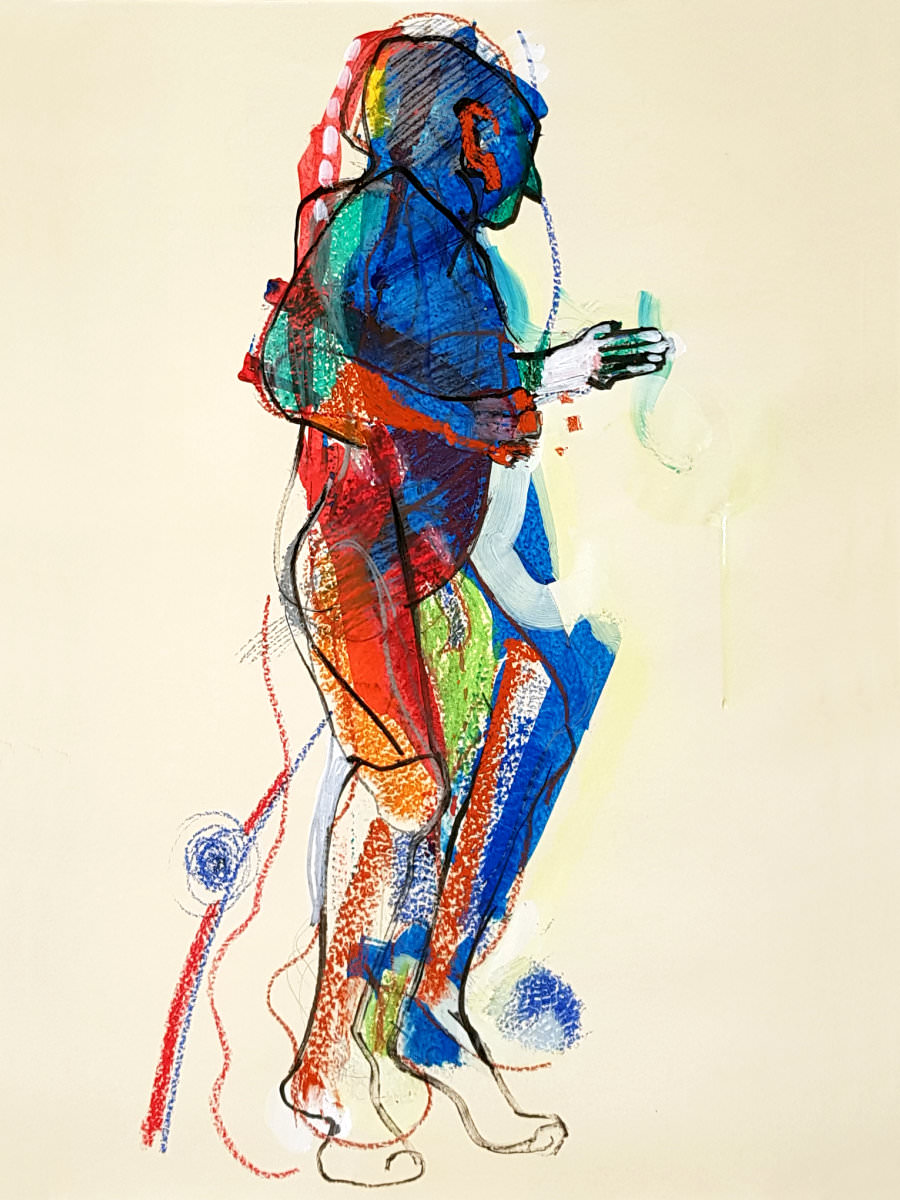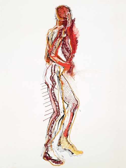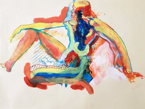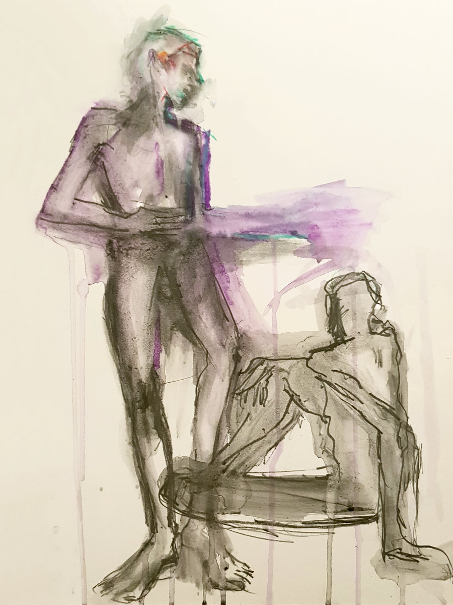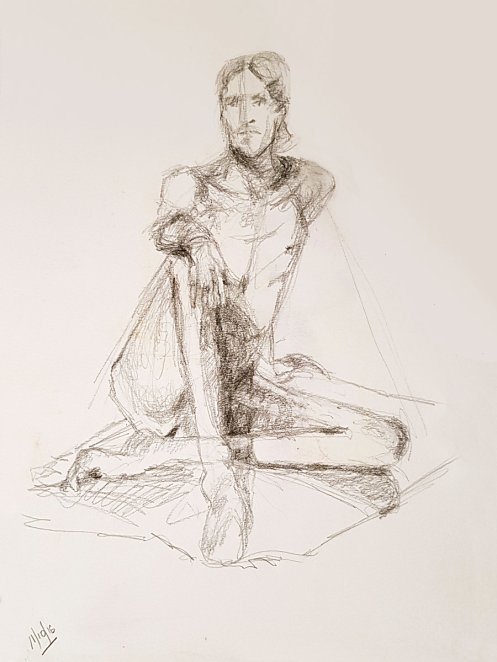 Finally a nice lie down. Well, not absolutely deliciously sumptuously nice as I’d put a twist in my torso and kept an arm, hand and index finger raised for vertical variety. My eyes were closed but there was little chance of sleep. Upon reanimating at the end, it was a pleasure to see such a range of materials had been used to capture my poses: fine pen and pencil work, scratchy charcoal, pastels both pale and vibrant, plus some bright splashes of watercolour. Warming feedback too. Lovely folk.