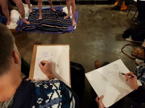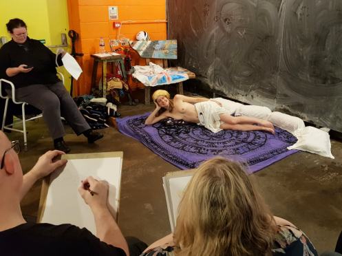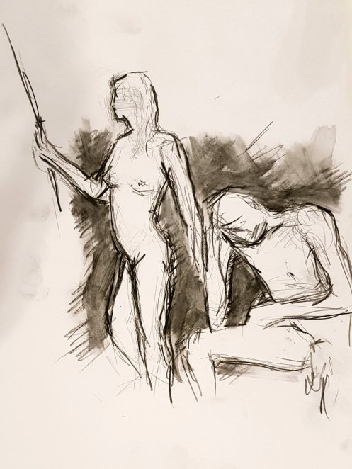 We had great fun with this event. Not only in the modelling, but also with the planning. On sifting through the year’s news our intention had been to find stories that we could translate into good life drawing poses, whilst also injecting some laughs, commentary and topical debate. All we needed was a warmer venue! Perhaps Spirited Bodies can take the idea even further next year. I hope you enjoyed guessing 2018’s headlines.