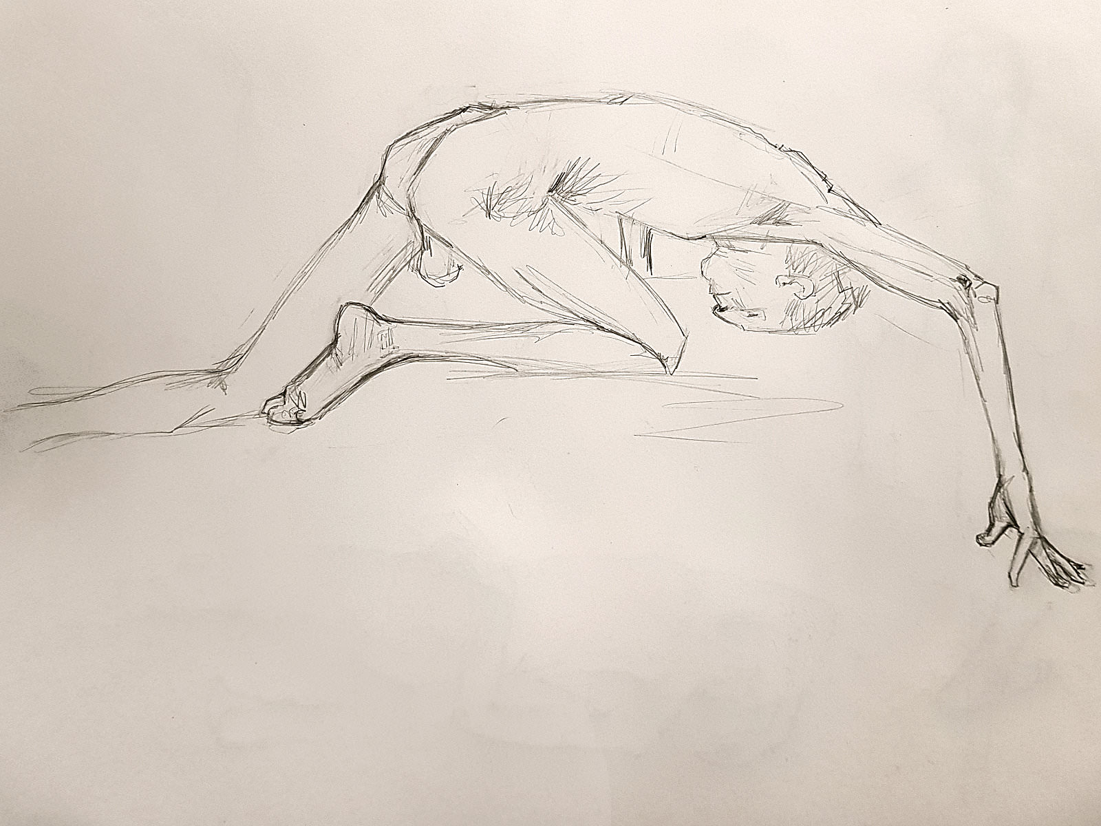 On the first weekend of January, I was booked for the Sunday morning slot. I started with a 15-minute standing pose, then progressed through quick work of 3-minutes, 2, 1-minute, 45-seconds, 30, 15 and 7-seconds, down to two poses of 15-minutes each that took us up to half-time.