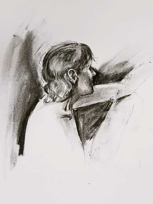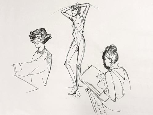 These days there’s only one model in one room, but I thought: how that second room would have been handy tonight! Through all my five and a half years of bookings here, I’d never seen so many people turn up to create art.