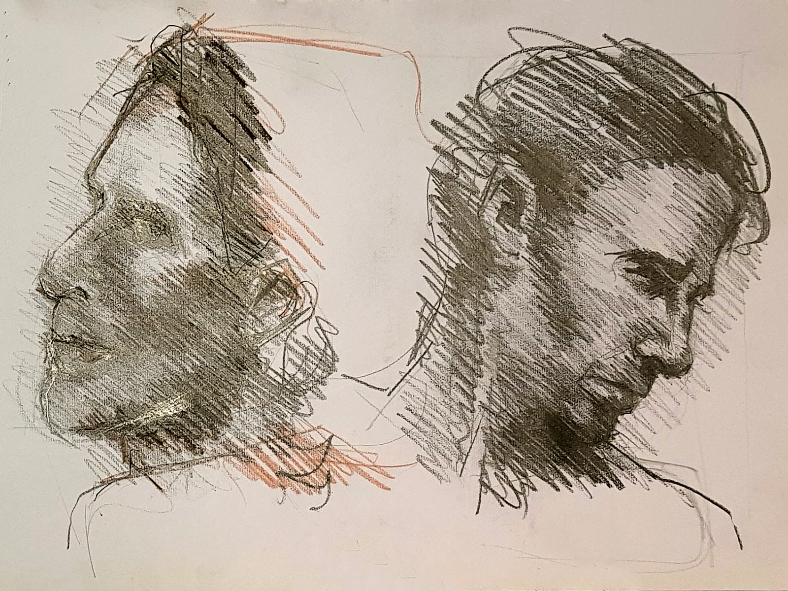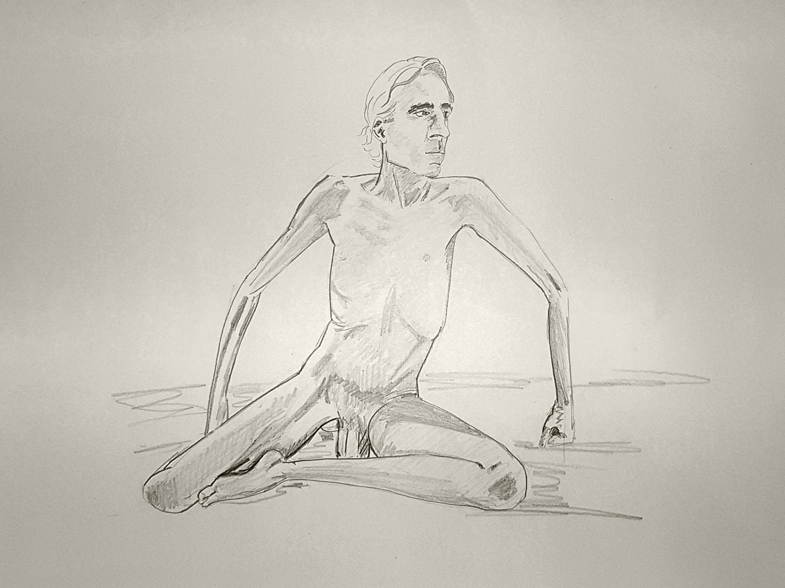 Group organiser, Adrian Dutton did an extraordinary job of welcoming everyone and finding enough room for each person to observe and draw. My central space with two large gym mats seemed luxurious accommodation for one, yet utterly walled-in.