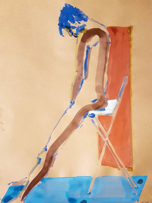 This pose was due to last 2-hours, during which I took three breaks. As time wore on, my buttocks and the back of my neck became ever more achy, but never unbearable. Tellingly at each interval I could immediately walk out of position, whereas sometimes in more painful poses, it takes a few minutes for me even to be able to stand.