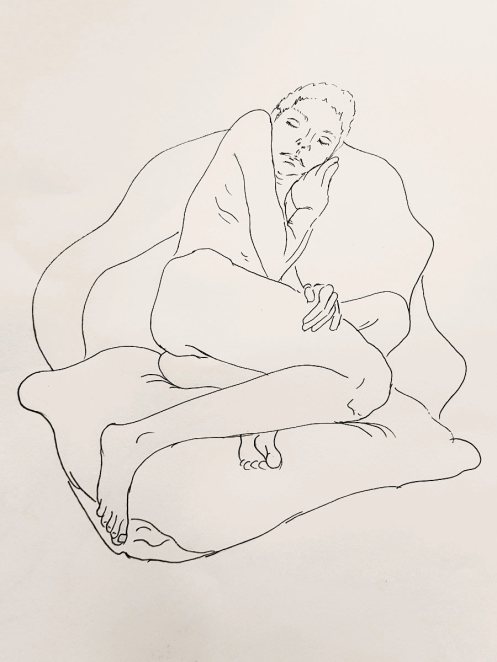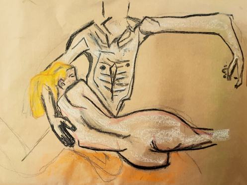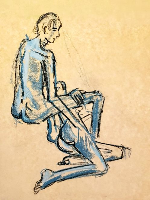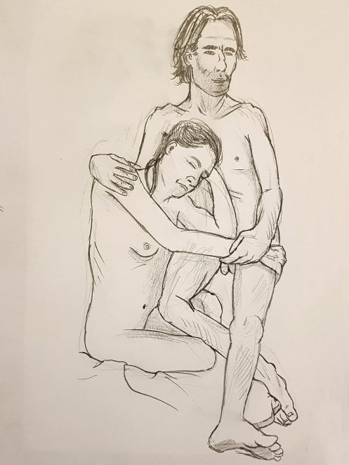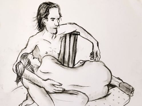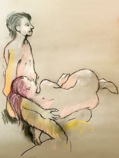 Esther and I had promised ourselves a gentle snuggly session with nothing strenuous or painful. Karen does like her short poses to be very short, however, so straight away we went into dynamic mode, making all manner of spontaneous shapes: five 1-minute poses followed by two of 5-minutes, and ending the first half with two of 10-minutes.