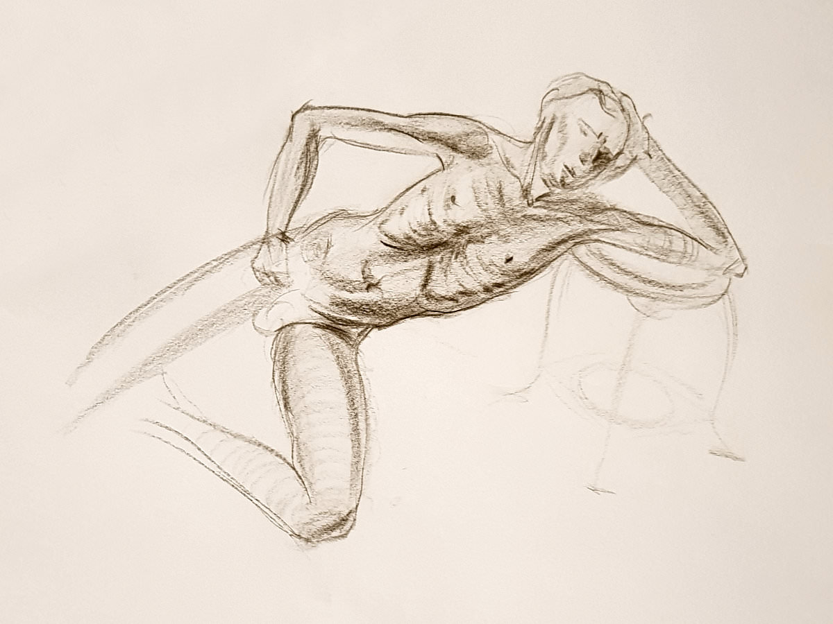After a week recharging in Jandía on sunny Fuerteventura, I resumed life modelling with Drawing the Star. It was my first time back at The Star by Hackney Downs in 2019. New brighter lights had been fitted but otherwise all was comfortingly familiar.