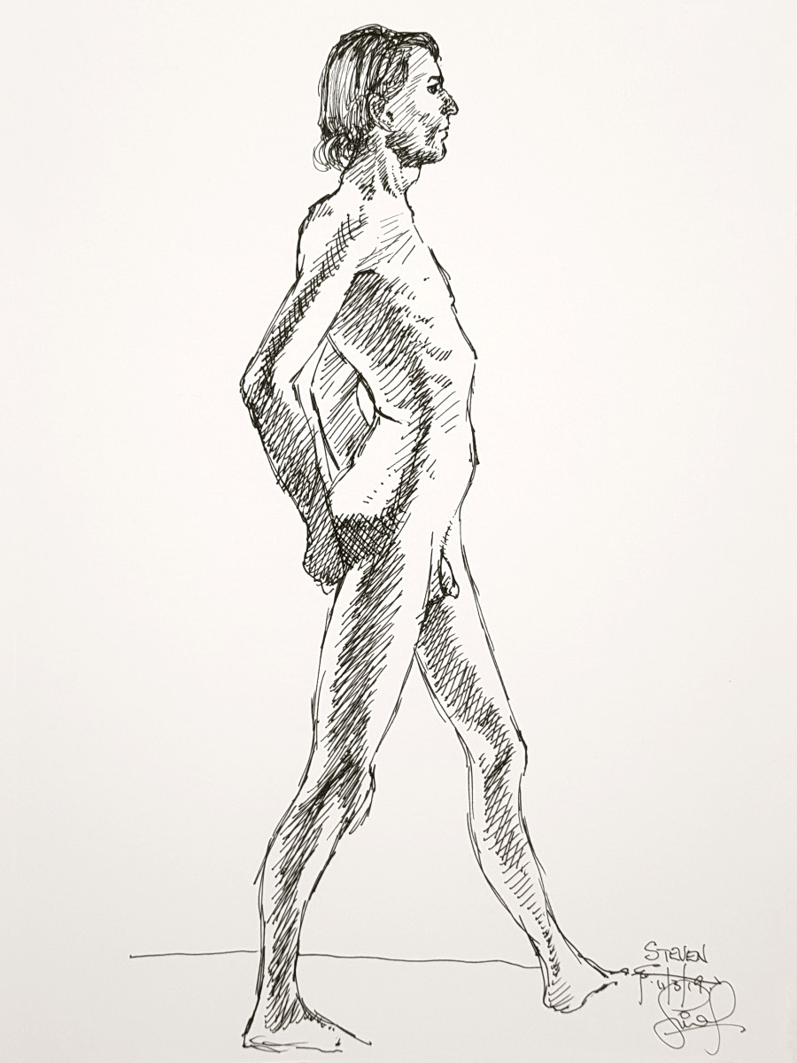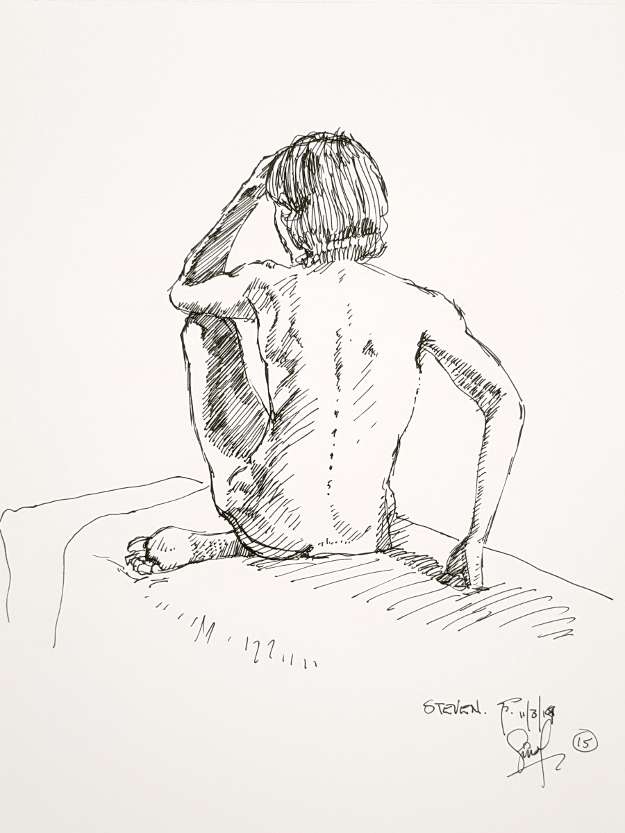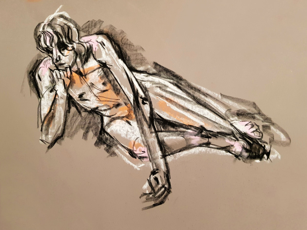 Earlier that day with time to kill in London, I’d popped into the National Gallery shop and leafed idly through some art books in search of pose ideas. An image that caught my eye and inspired me next was ‘La Petite Danseuse de Quatorze Ans‘ by Edgar Degas – albeit I was a 6’4″, 40-something male version. Lastly, I semi-reclined on my front for what turned out to be the least comfortable half-hour of this session. All in all, however, I was happy with my evening’s work and loved the resultant art.