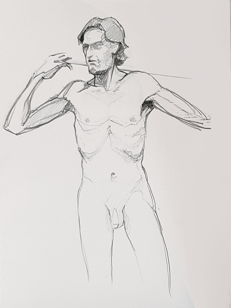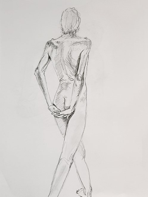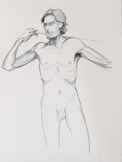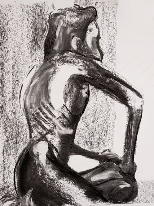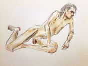 Once more to Hoxton on a Tuesday evening for life modelling at The Workshop, one of the Adrian Dutton life drawing venues. With the room about half full, I began with one 10-minute pose and it followed with three of 2-minutes and two of 5-minutes.