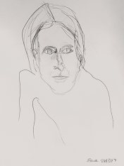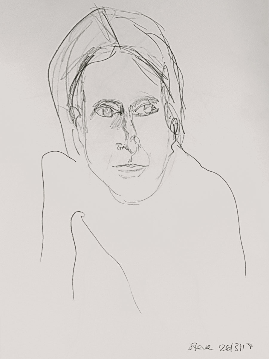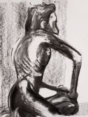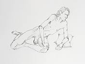 For the final pose I sat upon the floor, leaning forward and resting on one forearm; my only lapse into an achy position. When all was done, favoured drawings were laid out for general admiration. Thus ended another reliably well-run gathering.