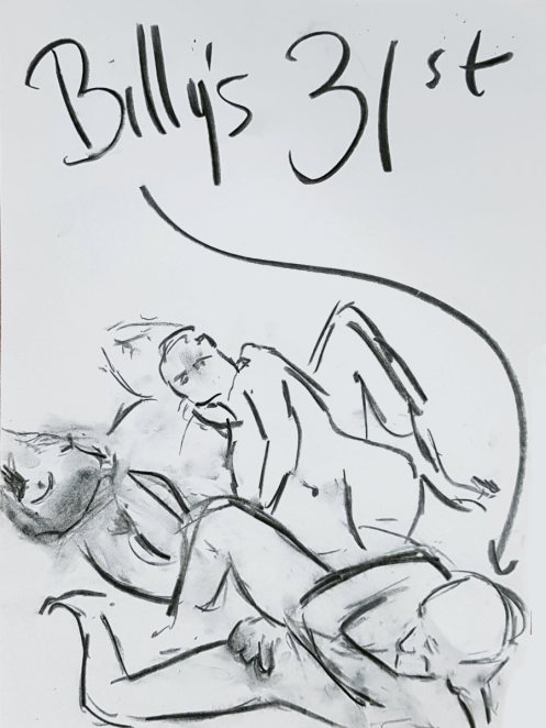 Fair play to Billy the birthday boy who stripped-off to join our climate change pose on beach towels in unseasonable warmth. Of course, we all sang him Happy Birthday…