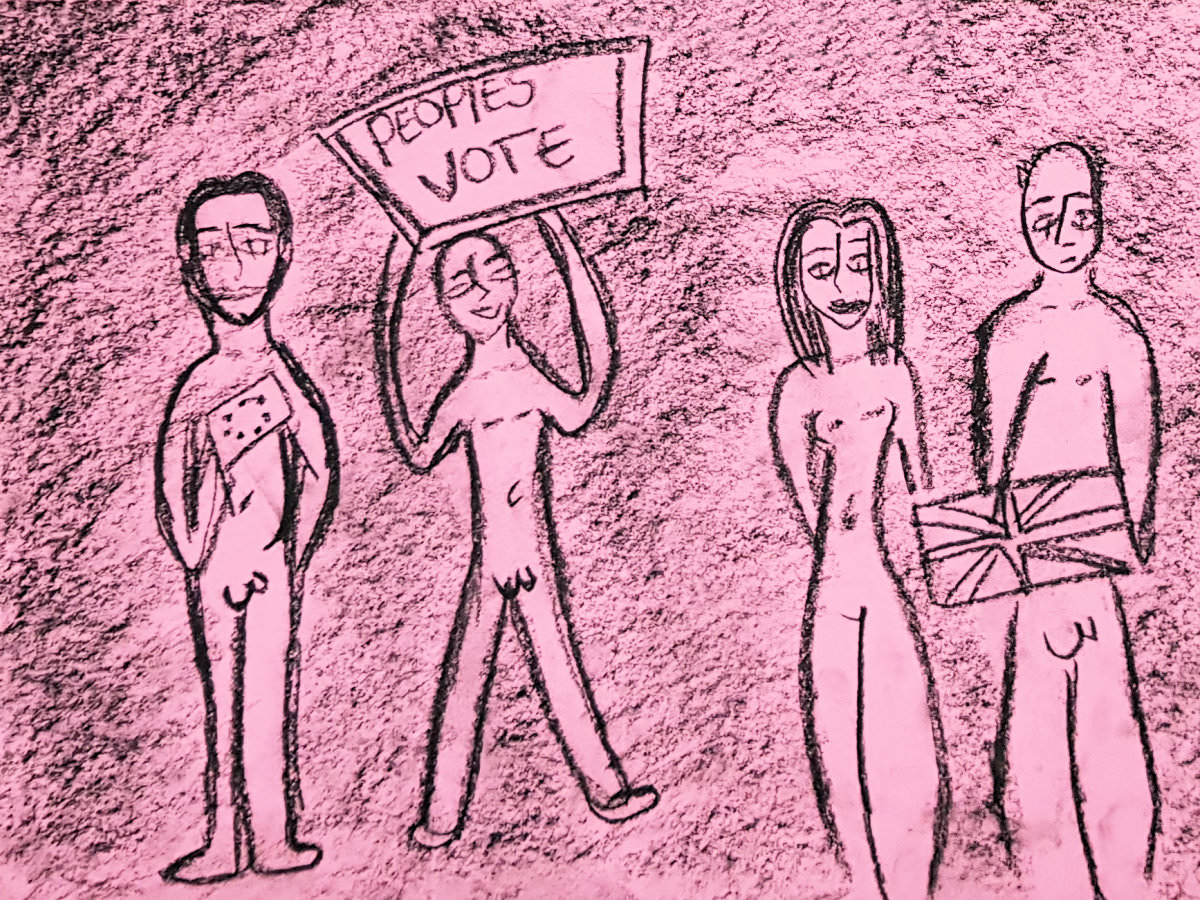 After a break, the first group tableau was an inevitable ‘Brexiteers’ versus ‘Remainers’ pose. Esther was joined by three volunteers, including one from the birthday party…